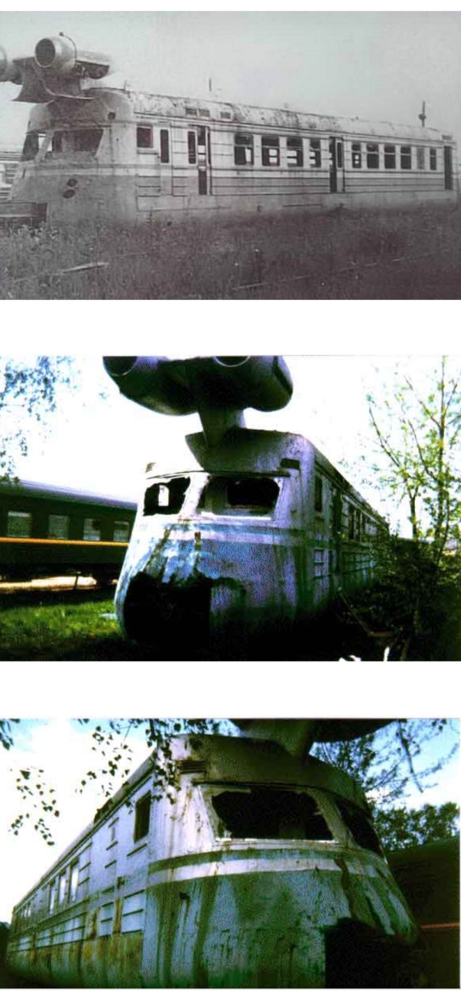 Кстати, у американцев тоже был реактивный вагон-лаборатория — M-497 "Black Beetle", также переделанный из автомотрисы путём установки пары реактивных двигателей на крыше и накладных обтекателей на торцах (и машинист так же смотрел через два стекла). Причём после окончания испытаний вагон вернули в исходное состояние и продолжили эксплуатировать для перевозки пассажиров.
