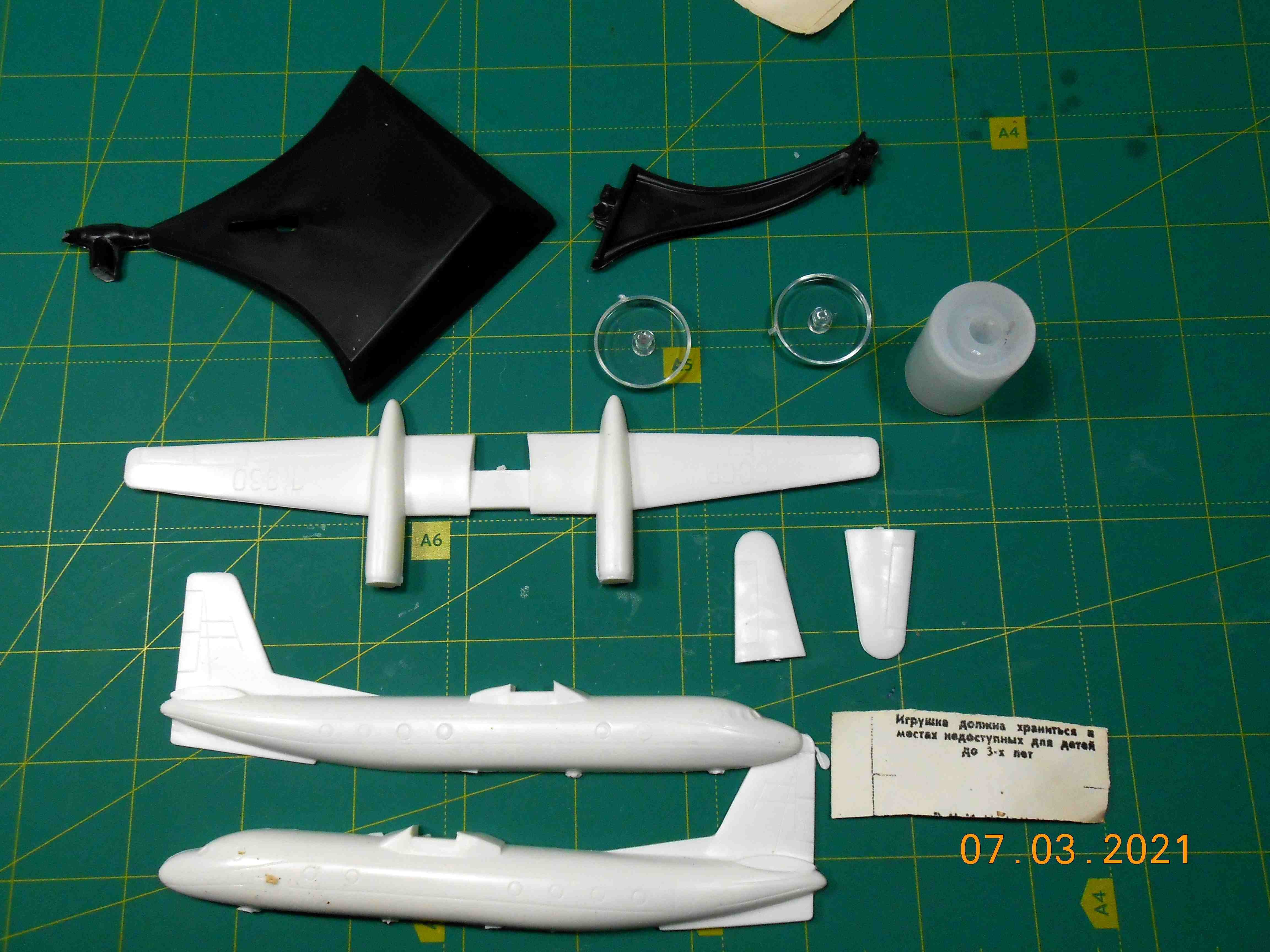 В примитивной коробке покоились не менее примитивные куски самолета.Сложность "Личинка 6+".
