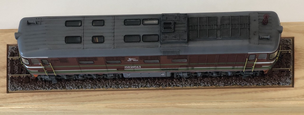 Самый большой косяк в покраске.. решил я акриловую краску покрыть лаком серии LP, что б покрытие было более прочное.. Когда покрасил и поставил заготовку на полку, через неделю примерно, начали появляться микро трещинки, краска LP, начала разъедать акрил.. Я не стал ничего исправлять, получилось что то типа кракелюра.. и как бы эффект не первого слоя краски, как на настоящих локомотивах, внутри трещинок краска светлее оттенком чем база.. Но всего этого с полуметра не видно..