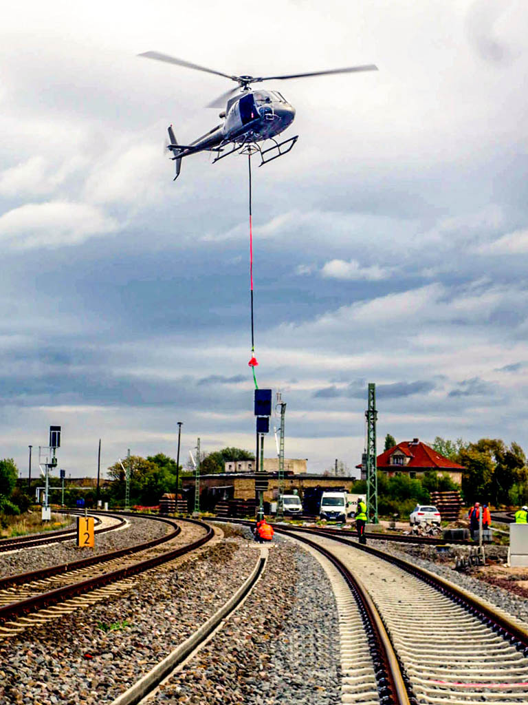 Вот примеры современного использования вертолётов на железной дороге в Германии