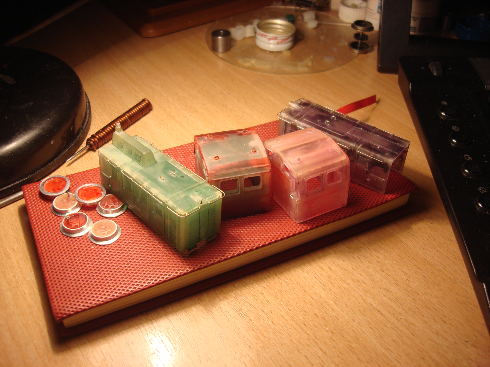 Думаю сделать одну секцию полноценной ( с двумя движками, свет трехточечный, вторую - безмоторную ) Будет кататься в сплотке. Далее все на фото :arrow: