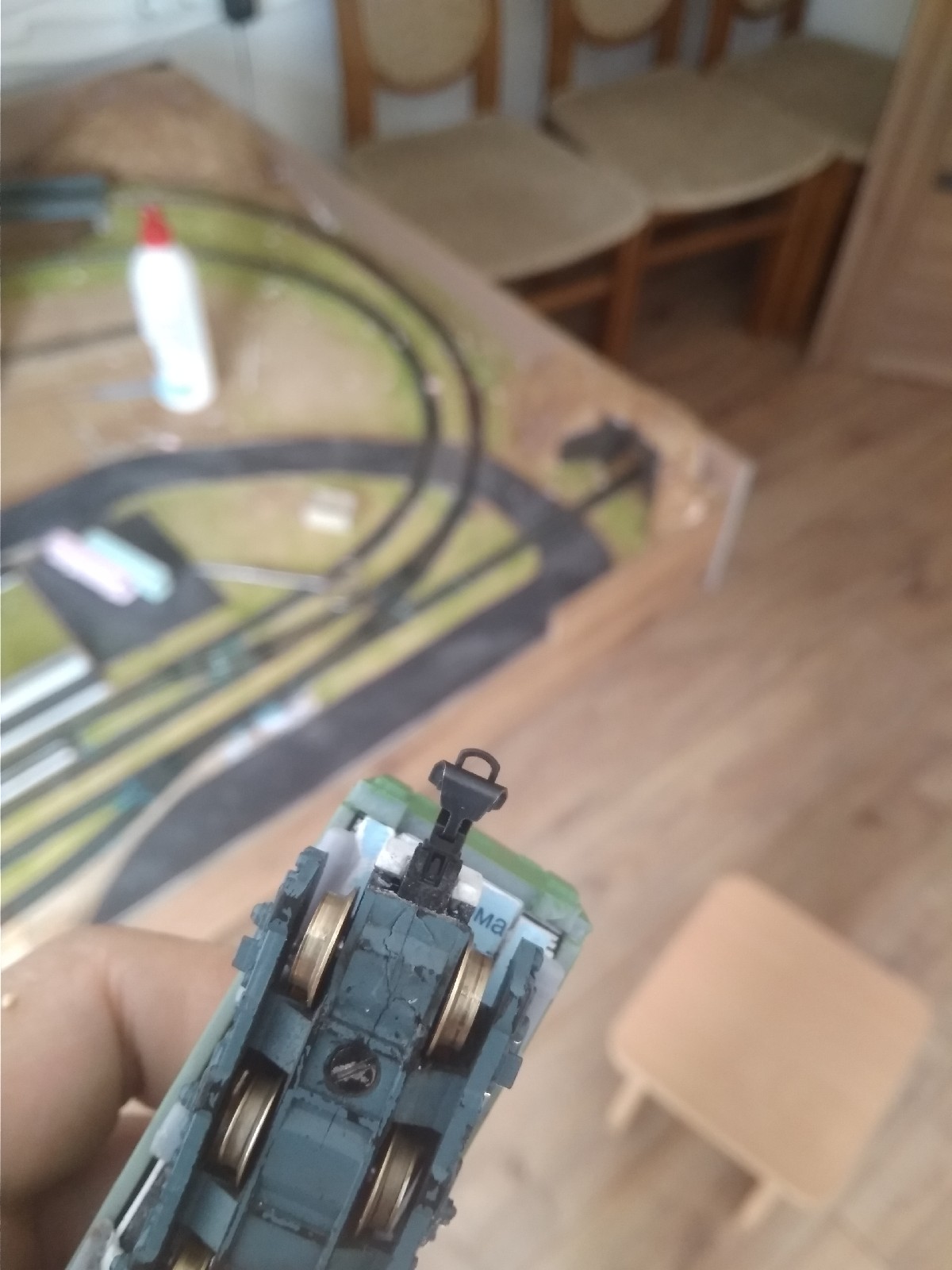 Трохи поприклеював підкузовне обладнання на раму 116-го. Зрізав надруковане фотополімером з пробного варіанту оригінального проекту та клеїв на БТТБшну. Ще треба трохи корекції. Також вклеїв одну шахту НЕМ, тест на поїздну роботу пройдений успішно.