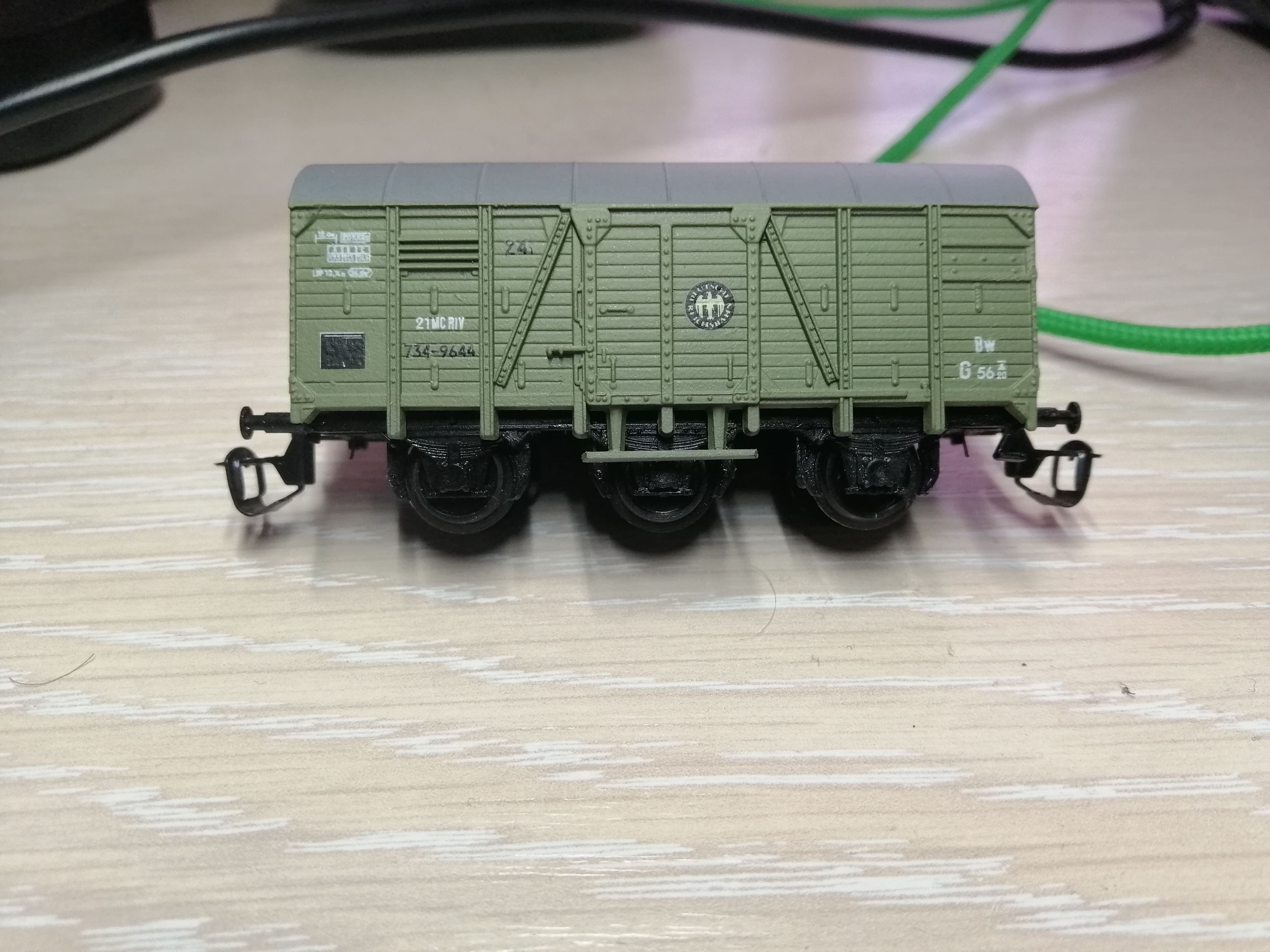 Всім доброго дня. З діорамкою поки застій - Муза пішла в невеликий отпуск за свій рахунок. А без неї не вимальовуеться площадка для чистки, мийки та та проведення ТО котла паровоза. Тому будем закінчувати спецваген - тим паче що рама вже зроблена, кузов остаточно пофарбований і обдекалений. Едине не получив ще травло штурвальчиків тормозів. Доклею коли прийдуть. Родилось таке чудо. Ну і фото прототипа Ну і наприкінці питання до знаючих камрадів - тормозні штурвали на рамі на таких вагенах розміщувались навпроти один одного , чи по діагоналі. ну і контрольний в голову - що в них возили , Бо обьем зостався як в звичайного G10 а вантажотідйомність за рахунок третьої осі виросла в півтора рази.