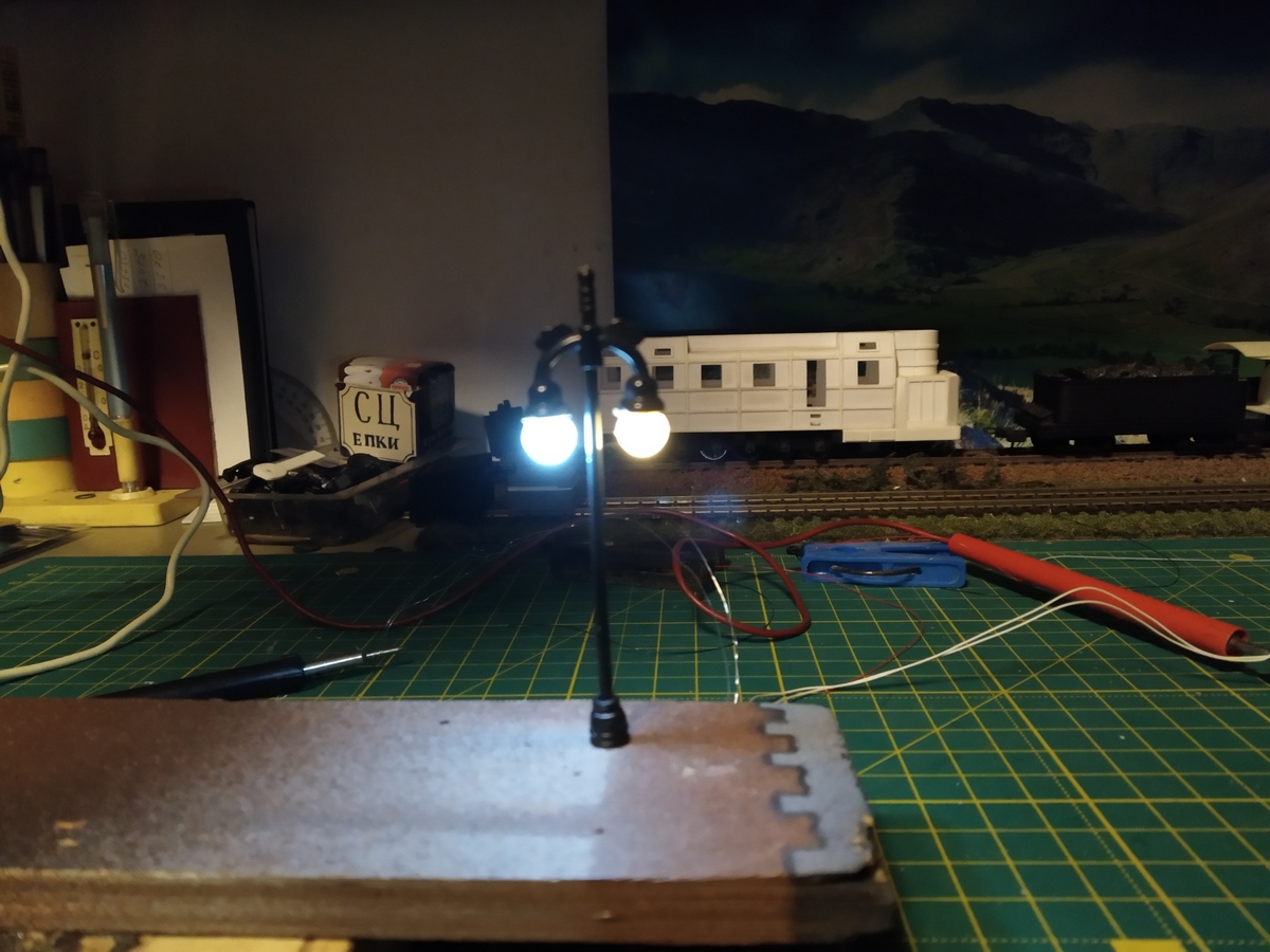 В общем, если смотреть с метра, а не изучать в макро, то можно перетерпеть до лучшего варианта. Но холодный белый спектр в моём случае вообще исключает установку этих фонарей на макет.
