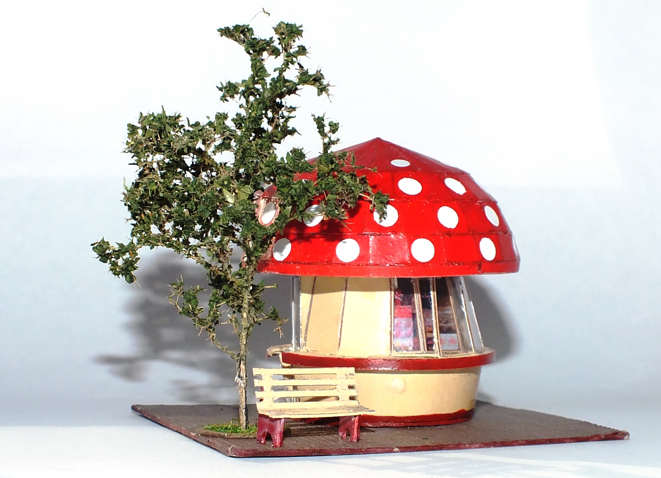Ну вот, это советское было... А сейчас - немецкое. Киоск для продажи молочных напитков фирмы Hermann Waldner KG, Германия, средина 1950-х годов. Всего было сделано около 50 киосков. Несколько дожили до начала 2000-х, правда в "зареставрированном" виде. Масштаб -1/87, картон, развёртки из сети , в общем всё, как всегда....