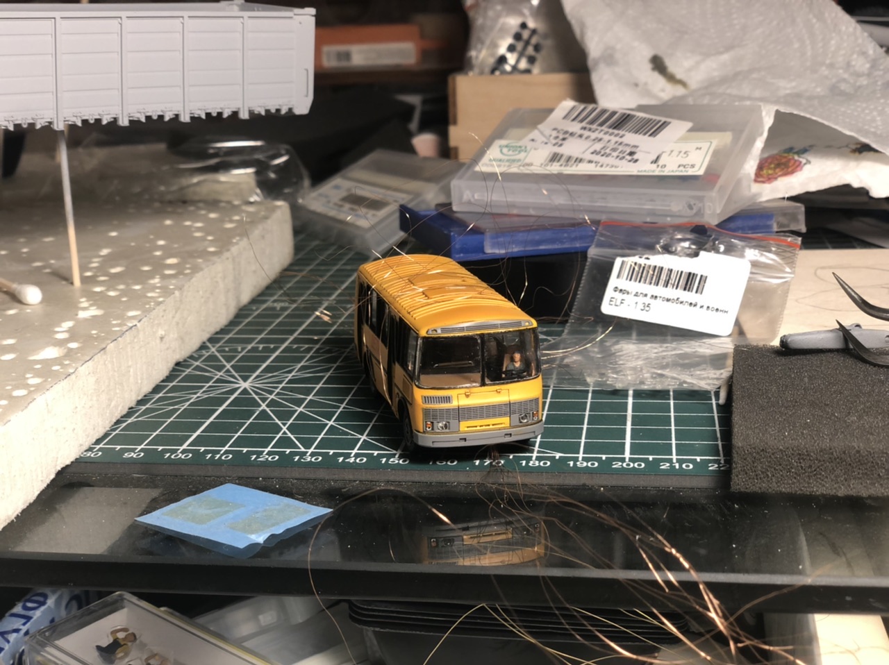 Ну собственно фото пазика в проводах и набросок диорамы.