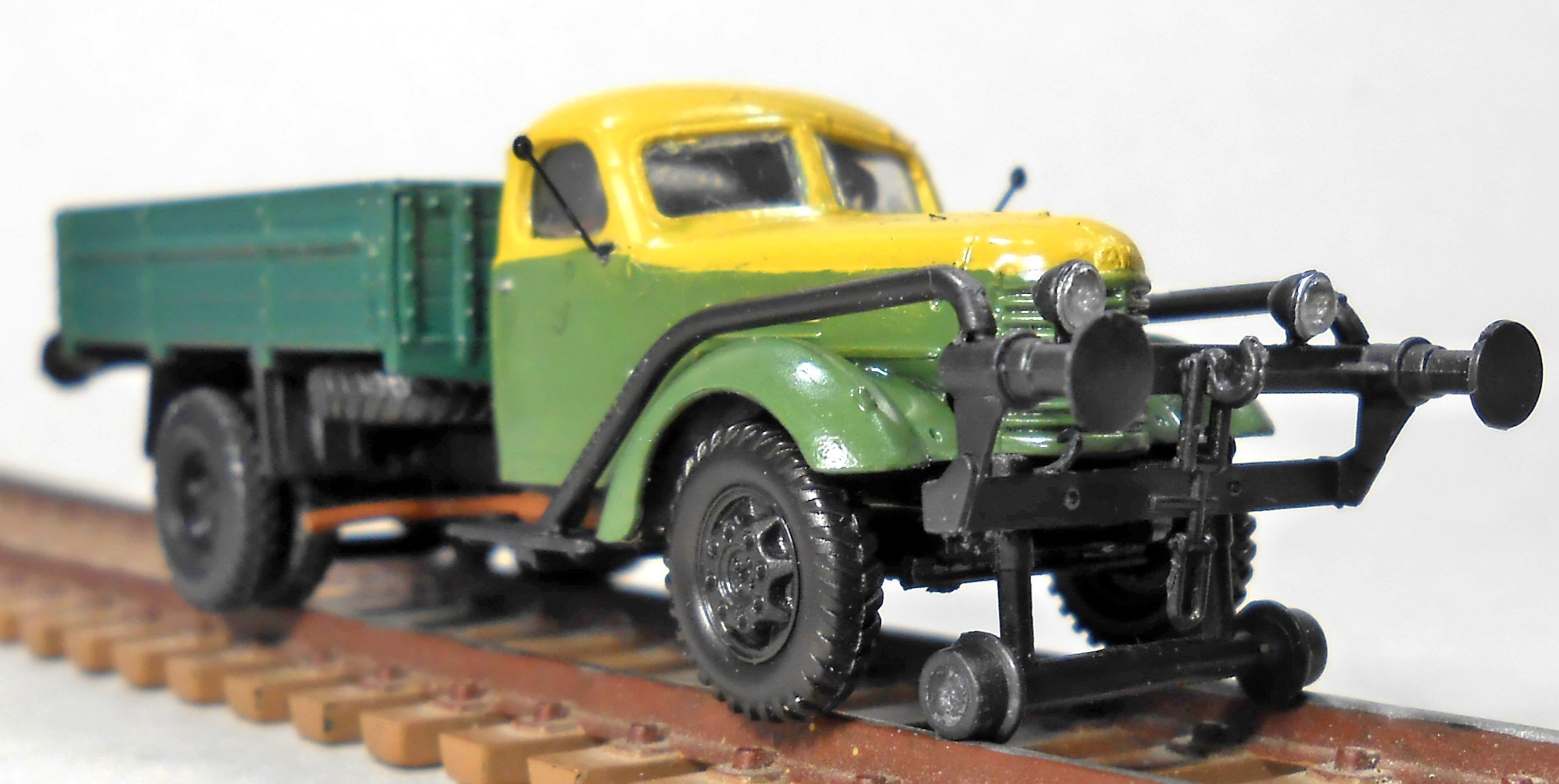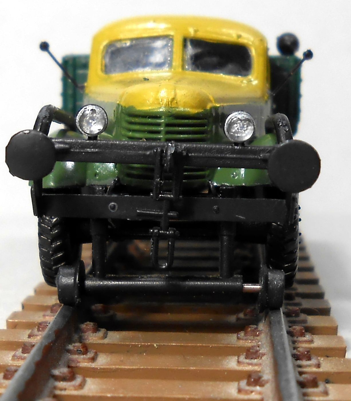 гарний спецтягач вийшов. Душевний . Единий мінус висота буферного бруса не співпадае з буферами вагона. Очевидно це прорахунок виробника ,але ж можна було при зборкі модельки виправить якось цей косяк за допомогою молотка й зубила. Тим більш для себе ж любимого. Розкладка кольору- "масть" прикольна -нарядна така ,начебто начальник депо перед якимось святом прогнувся - прям чувство що щас на борт транспарант повісять типу "пятирічка за три роки" або "да здра пер ма"