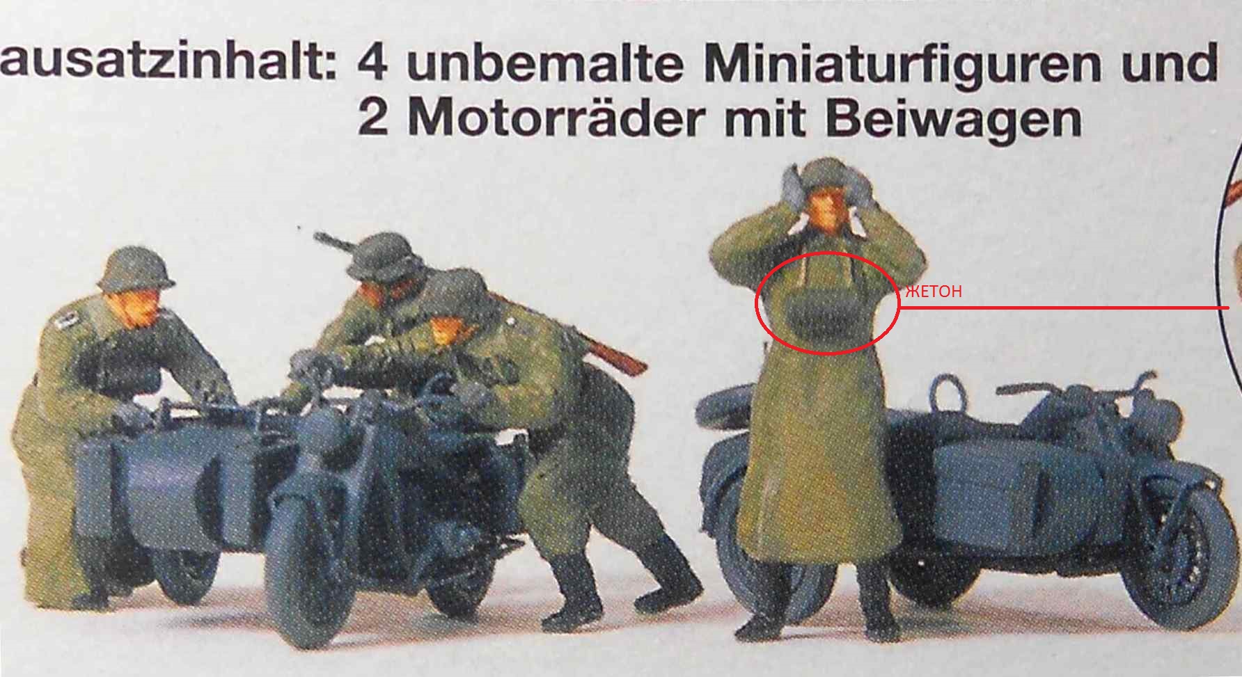 Но в целом соответствует прочим фигуркам этого производителя. Окраска акрил,кисть.По сценкам: одиночный ганс натягивает каску перед поездкой.