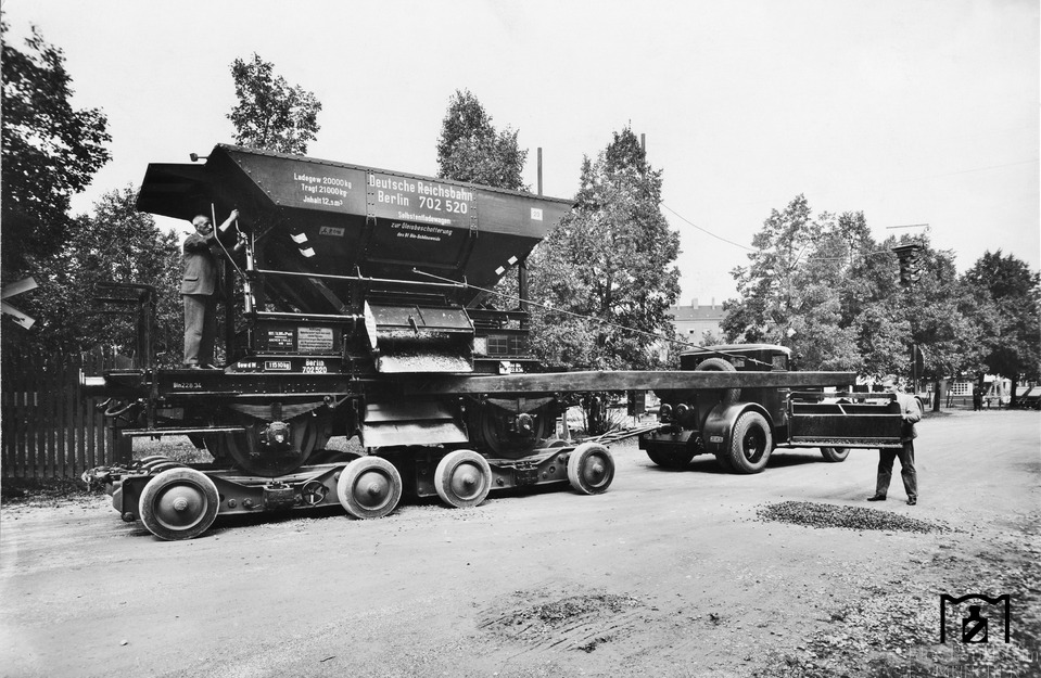 - демонстрация приспособы к вагону, для заполнения выбоин в процессе дорожно-ремонтных работ: