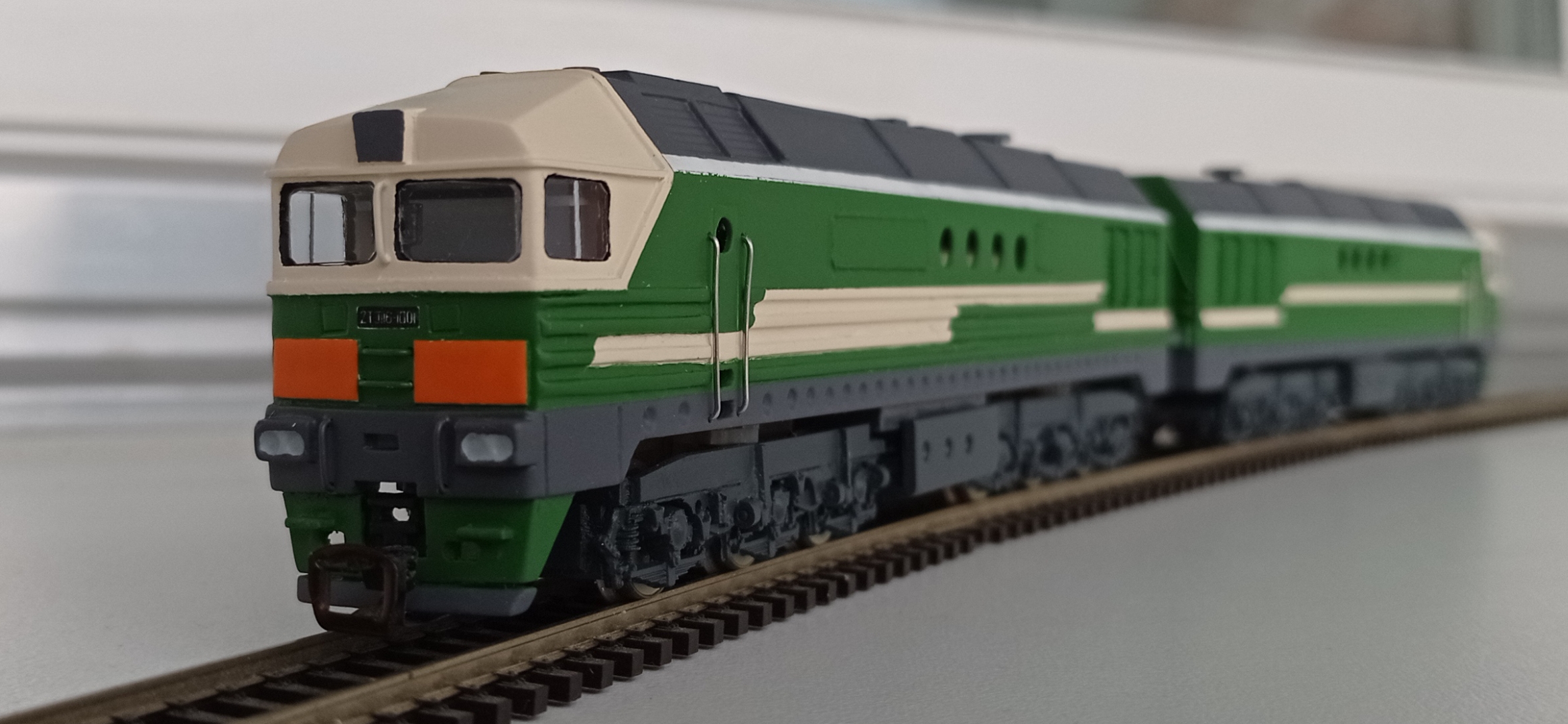 В продолжение темы долгостроев, удалось доделать ещё одну модель, которая стояла ещё с прошлого года (да, их у меня ещё много :D ). Если что, модель изображает тепловоз 2ТЭ121-006, единственный 121-й на ЮЖД, приписки депо Основа. На тепловозе стояли харьковские дизели 3Д70. Хороших фотографий не найти, по сохранившейся видно, что схема покраски у него была такая же, как у 005-го.