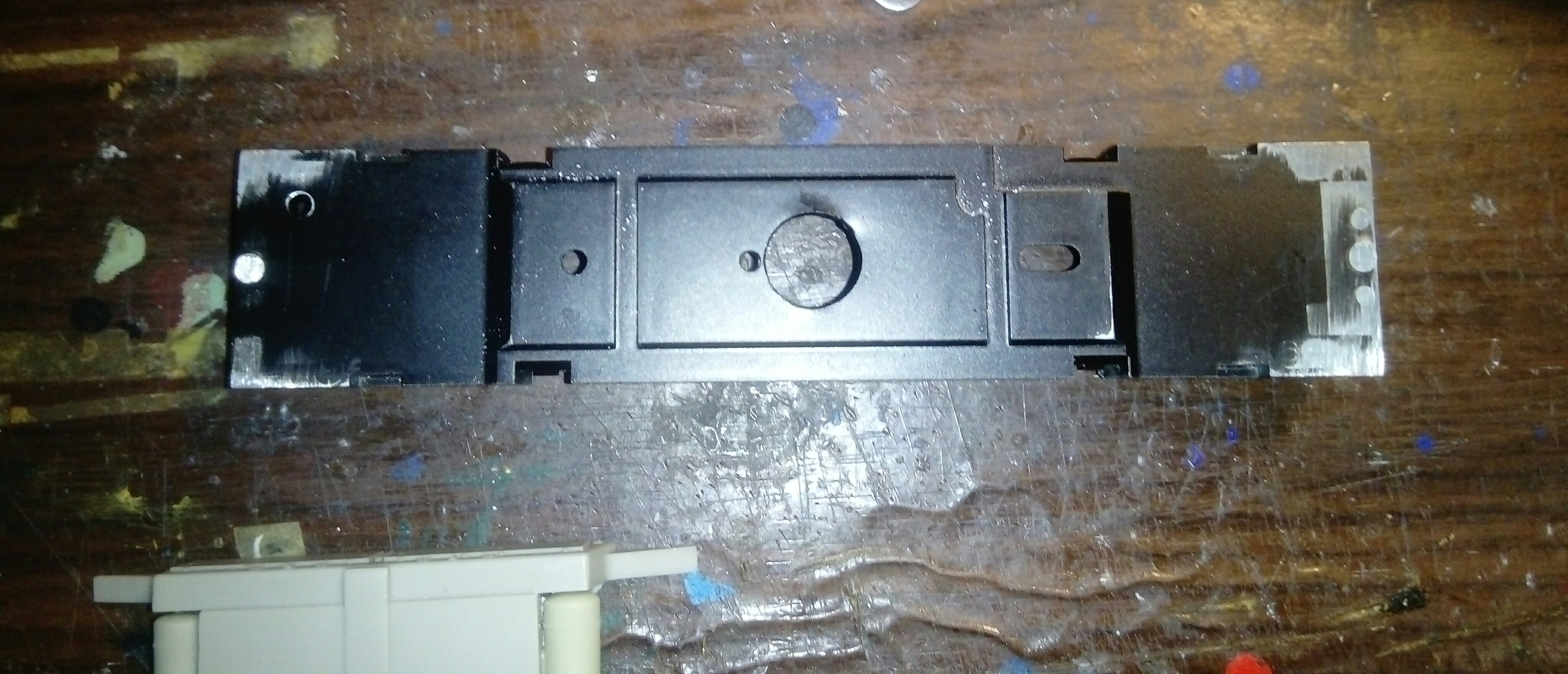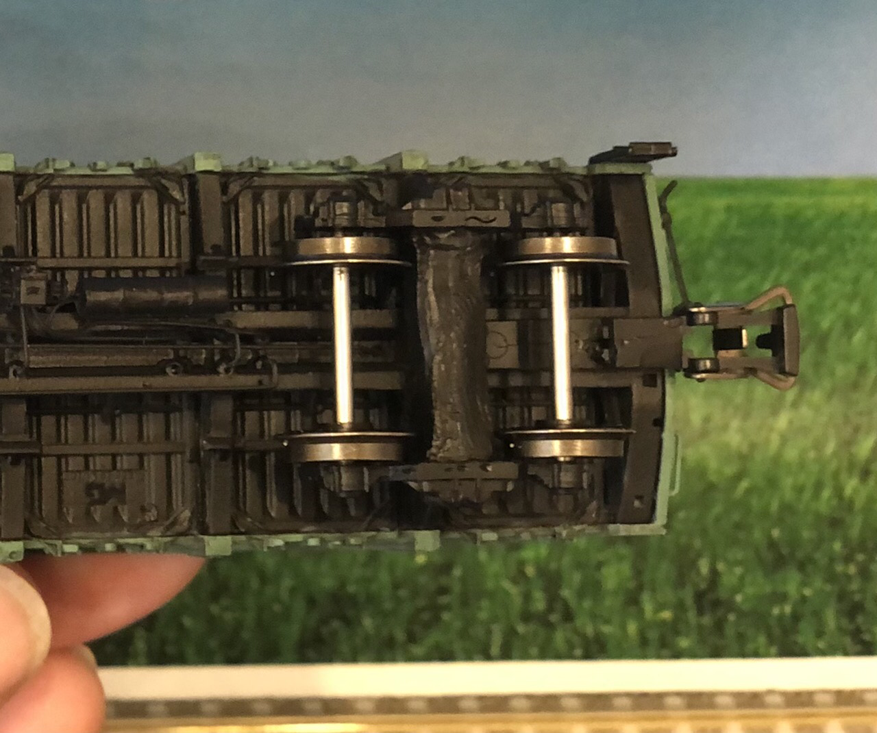 Ходовка реально получается очень тяжелой, притом полкузова еще и свободно остается - при желании можно до кило веса добалластировать. Я даже в раме выточил места напротив окон кузова, т.к. у ревльного ТЭП70 там просвечивается назквозь.