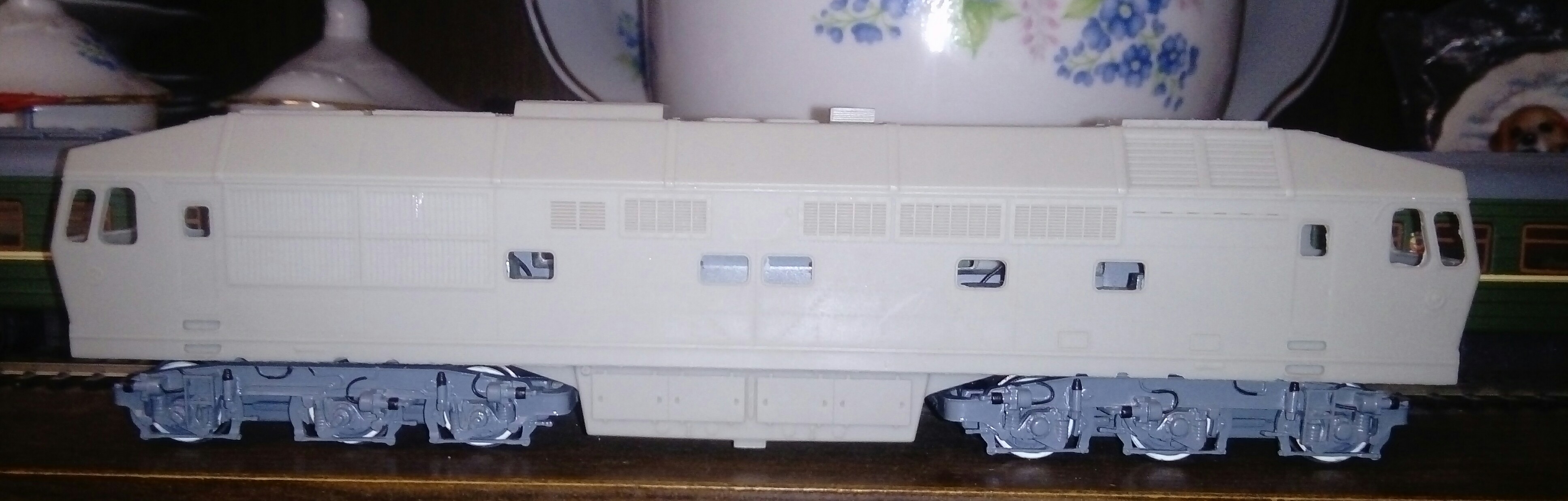 Готовая рама пока на тележках от Е151 и имитациях тележек от Гусевского ТЭП70 (Моделл-Экспресс). Их буду менять на е103шные с боковинами от РТМ.