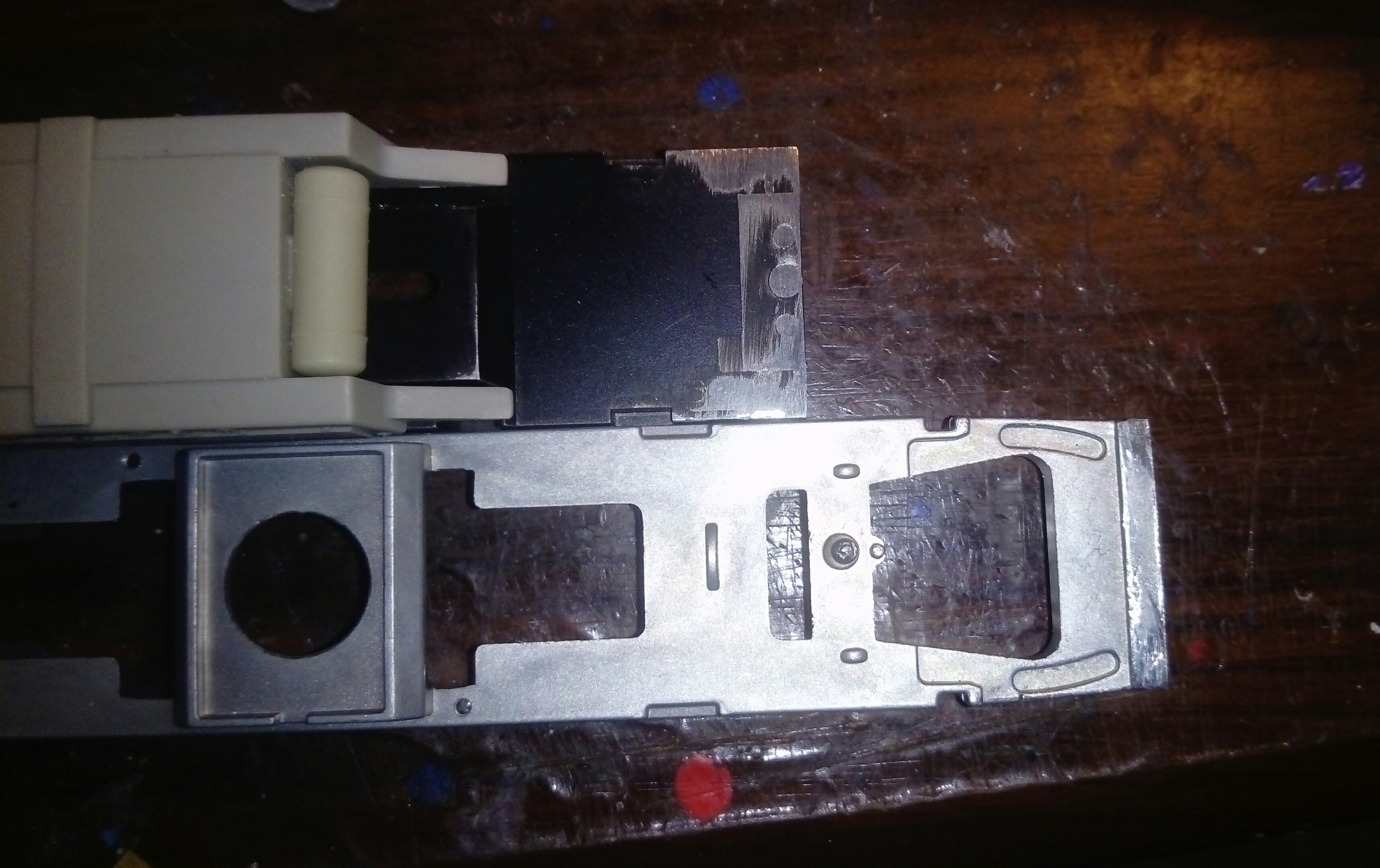 Рамы для этой модели я заказал на Роко от бельгийского длинного Нохаба http://modelena.ru/tiporazmer_HO/podvig ... lovoz.html , арт. запчасти 117602 (8,80 евро с налогами, то есть для нас где-то за 7 евро выйдет). Она отлично входит в кузов, а ее средняя выступающая чуть вниз часть вообще как будто под бак кита сделана - по длине один в один, и ширине. Рама чуть короче внутренней длины кузова, где-то по 5-7 мм короче с каждой стороны. Я заказал вторую раму - от е151 и при помощи ее концов доудлинил. Можно и одной рамой обойтись.