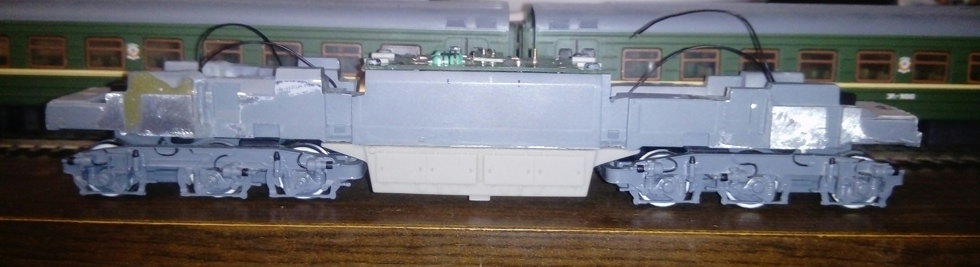 Тележки можно использовать не от е151, как, например, делал Моделл-Экспресс, а от Е103. Первые две оси практически сходятся, разница в 0.5 мм, а вот третью ось придется двигать ближе. Причем, если купить как донора старый Е103 от Роко 40000 х артикулов, то там на тележке только 2 передние оси ведущие, а третья паразитная. То есть даже не жалко и двинуть.