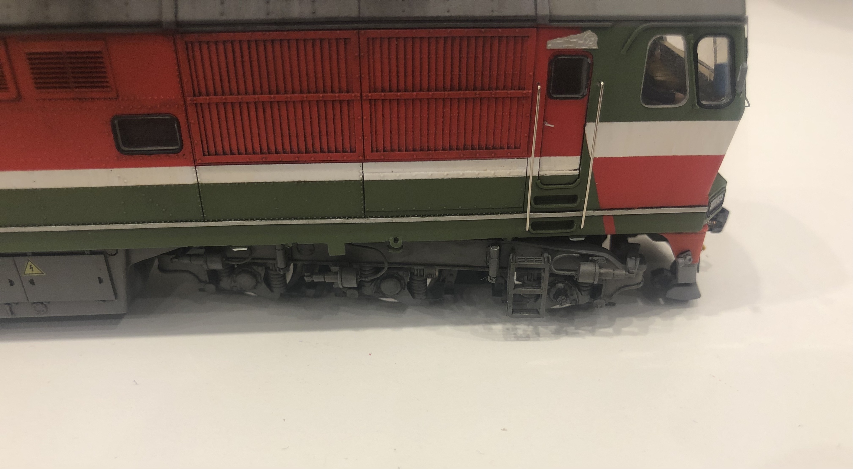 Готовая рама пока на тележках от Е151 и имитациях тележек от Гусевского ТЭП70 (Моделл-Экспресс). Их буду менять на е103шные с боковинами от РТМ.