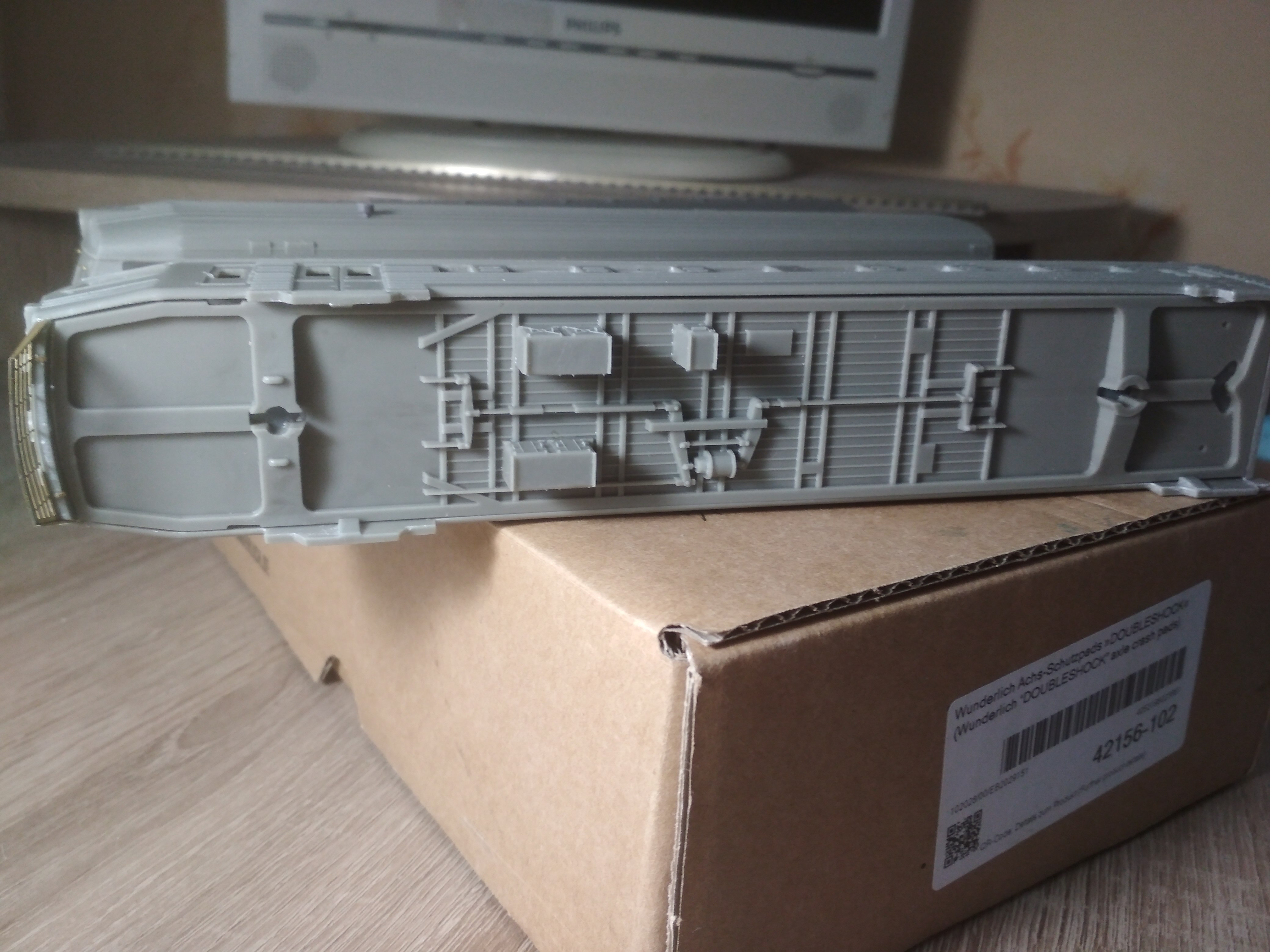 Практически готов к выпуску электропоезд ЭР2 в НО. В комплекте головные, моторные и прицепные вагоны. Заточен под ходовку Br114 ROCO. Ходовка располагается в моторном вагоне.