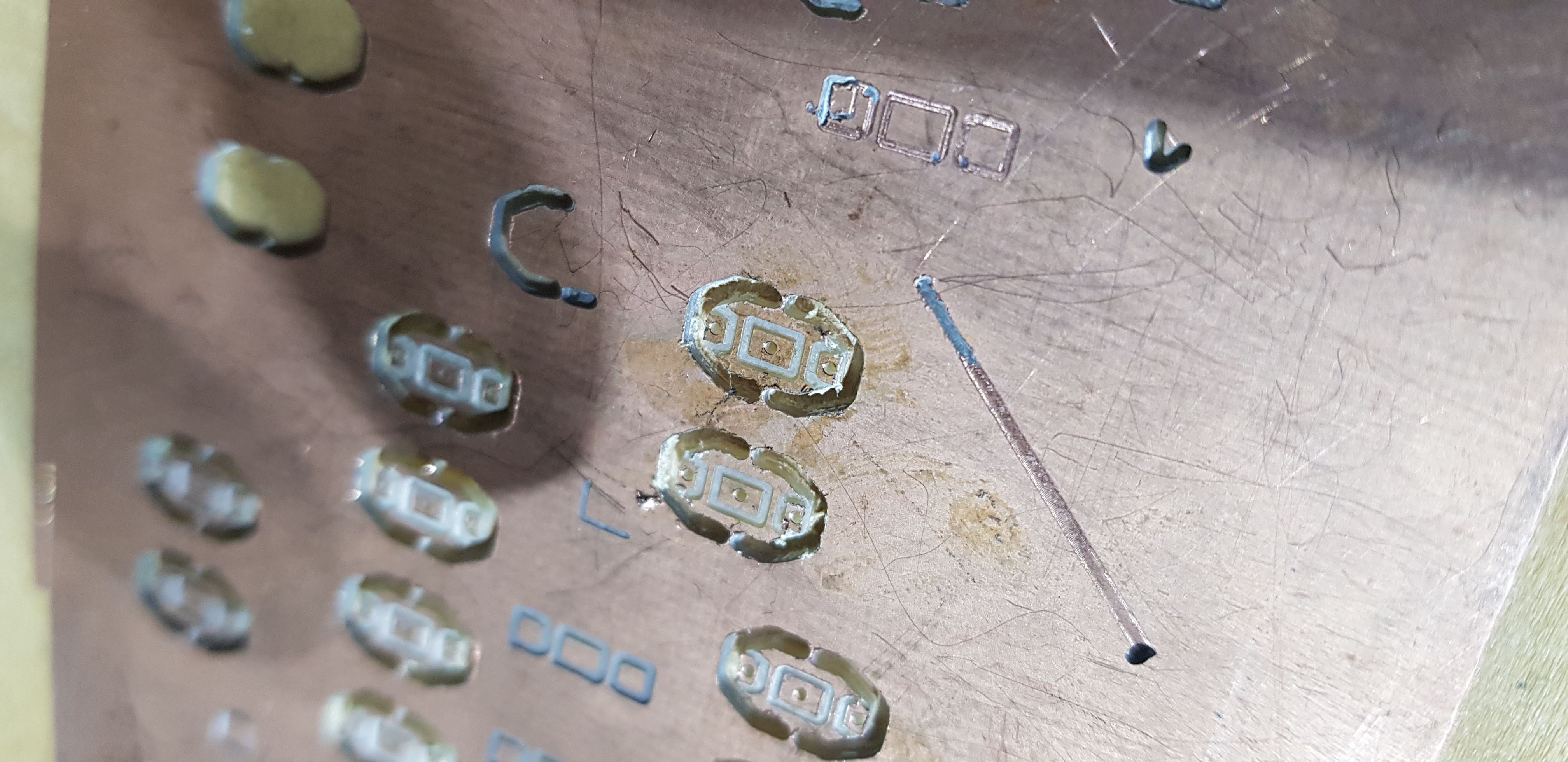 Платы фрезерую га домашнем станке ЧПУ3018. Т.к. это первый опыт работы с ЧПУ и гравером, то помучился изрядно. Это наглядно видно на фото по количеству недоделанных плат, царапин и задиров.