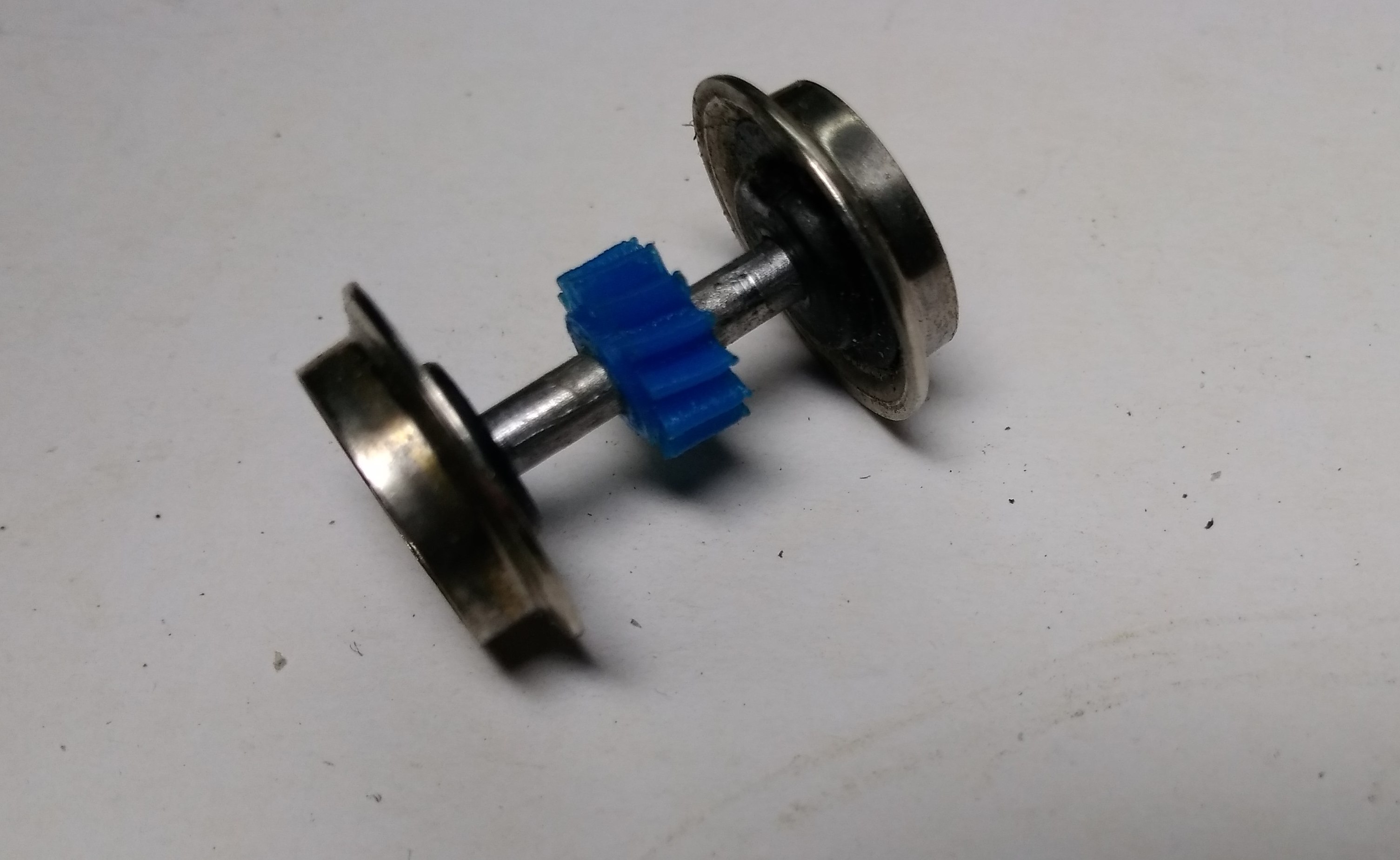 Разработан набор косозубых шестерен для ремонта локомотивов масштаба НО производства фирмы PIKO, а именно: Br110, Br120, Br130, Es499, четырехосных тендеров с приводом и пр. Довольно часто шестерни, что закреплены на осях колес трескаются и перестают передавать усилие от мотора на колеса. Склеивание не дает эффекта – шестерни начинают клинить. Для устранения этого предлагаю шестерни, напечатанные на 3D принтере. Внутреннее отверстие 2,5мм, но для самодельщиков есть с отверстием 2,0 мм, которые можно установить на обычные вагонные оси. Цена шестерни – 30 грн.