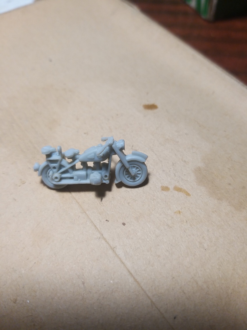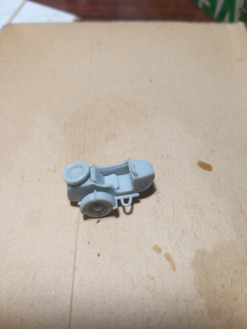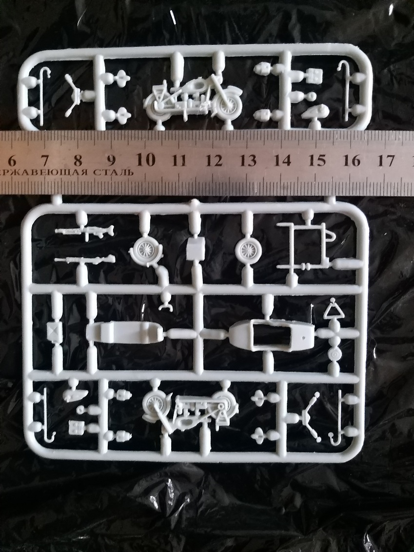 Меня сбивает с толку, что в ките, не половинки одного мотоцикла, а два мотоцикла. Один с коляской, другой без и что к какому клеить покуда не разобрался.