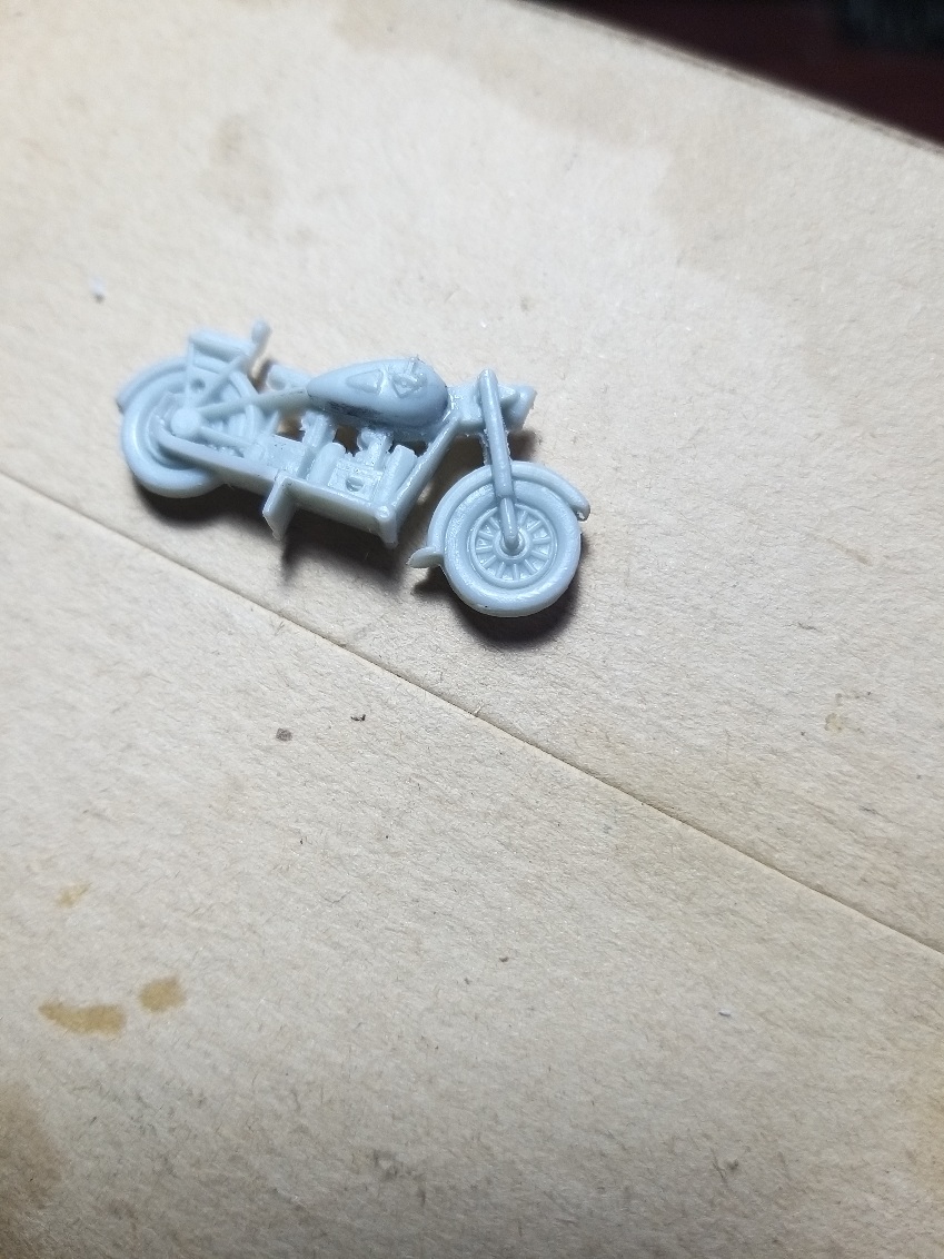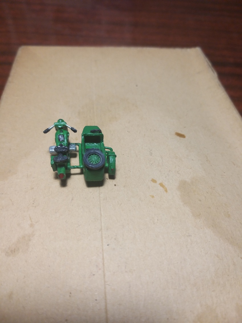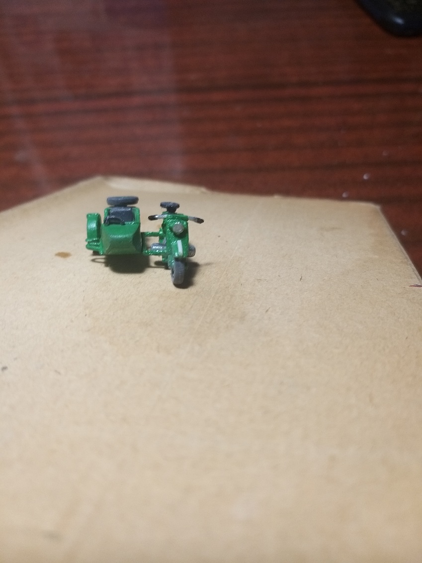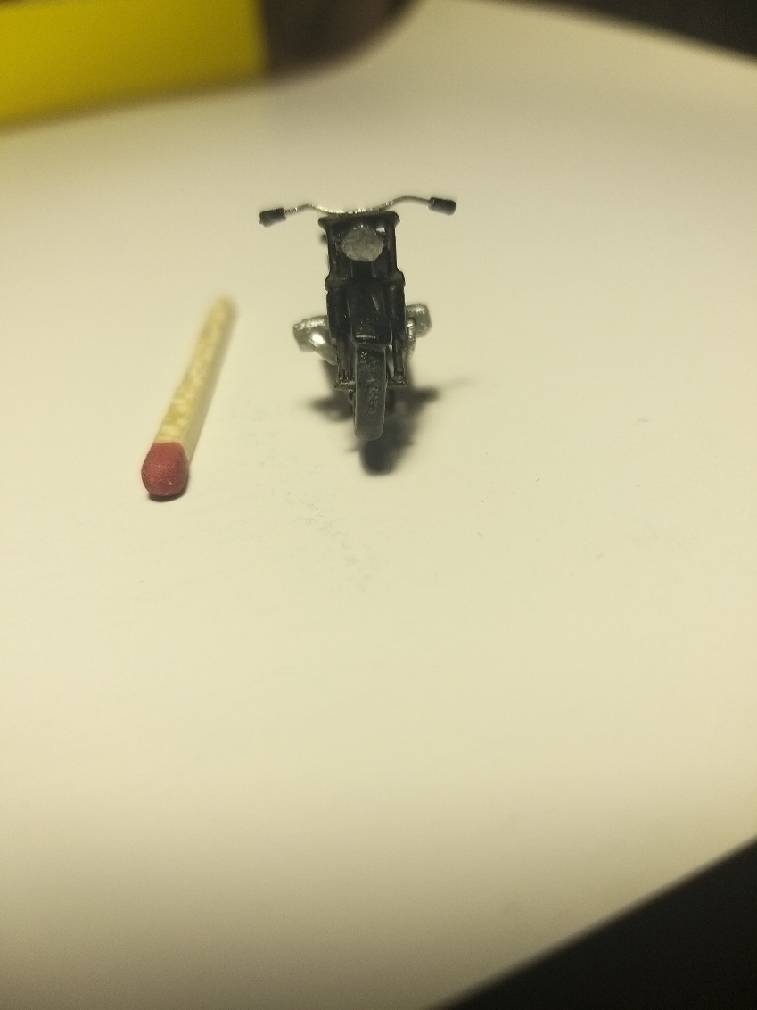 Хотел, с этого мотоцикла, заделать что-то похожее, под свою четвертую эпоху сжд.В итоге:кисточка +мои кривые руки=плачевный результат... Где-то то на "заднике" макета в кустах спрячу.