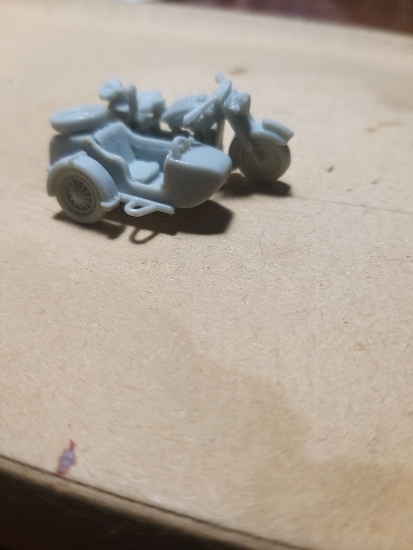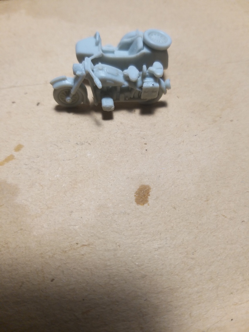 Меня сбивает с толку, что в ките, не половинки одного мотоцикла, а два мотоцикла. Один с коляской, другой без и что к какому клеить покуда не разобрался.