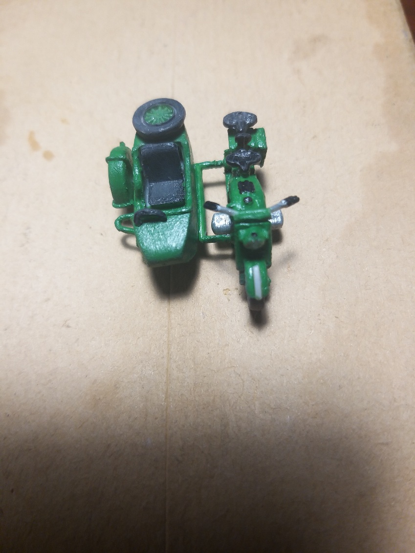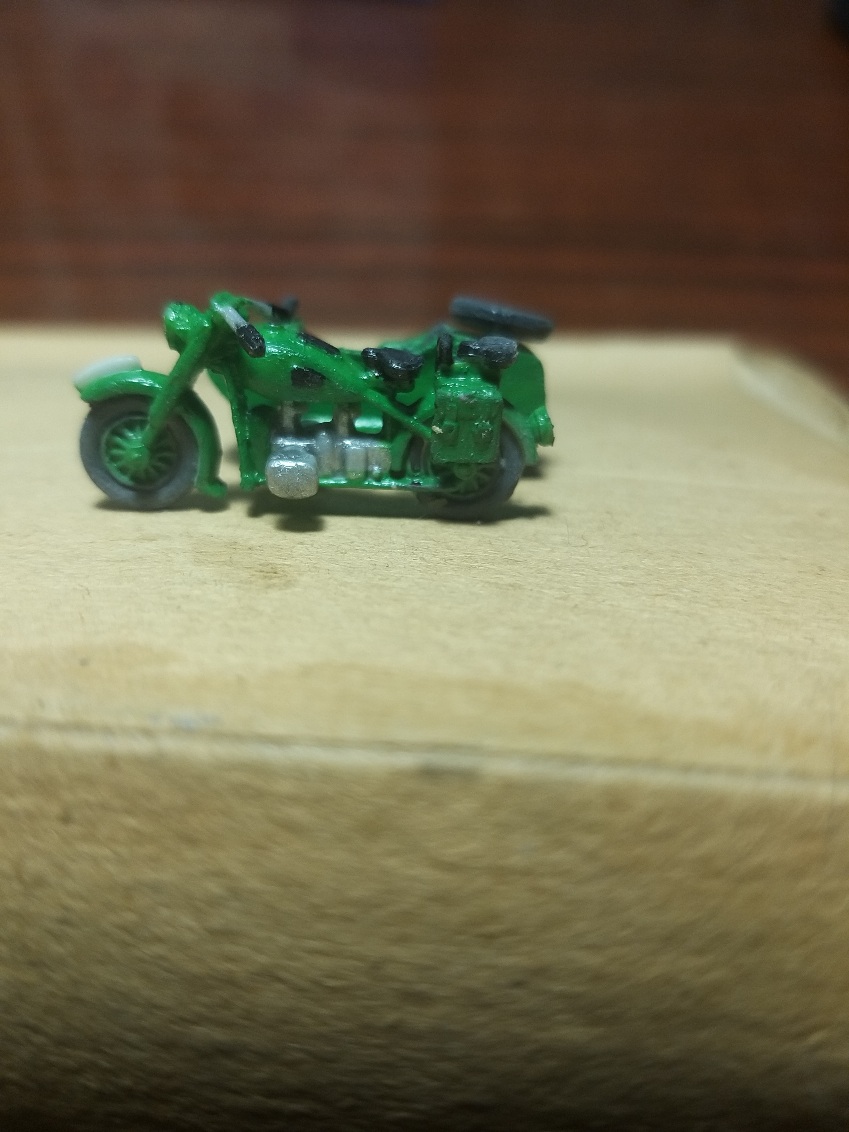Хотел, с этого мотоцикла, заделать что-то похожее, под свою четвертую эпоху сжд.В итоге:кисточка +мои кривые руки=плачевный результат... Где-то то на "заднике" макета в кустах спрячу.