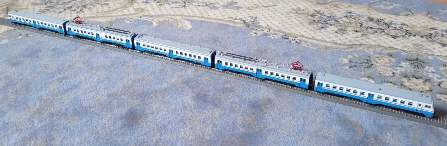 Скорее всего. Кроме того, что для прототипа слишком узкий диапазон во времени и месте, так и для модели не самое удачное решение: вагоны длинные. В случае правильного формирования, нужно минимум 4 вагона. Меньше трех вообще не получится. Мало того, что на макете место занимает, так и в поворотах состав "ломается" сильнее, чем ЭРка.