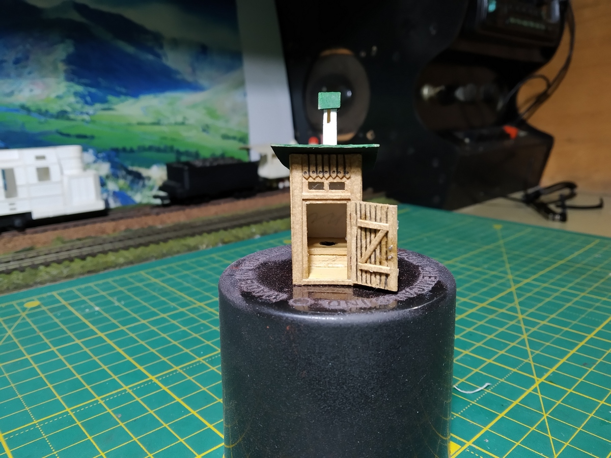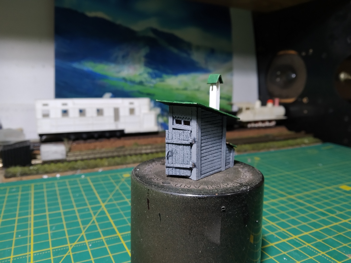 На данный момент не сделаны только дымоходы. Все остальные работы в картоне завершены. Сделано остекление окон, двери и крыльцо главного входа, некие детали на крыше. Только-что установлено ограждение перрона, которое будет иметь продолжение на перрон справа, но сегодня отчёт именно о вокзале и о картоне.