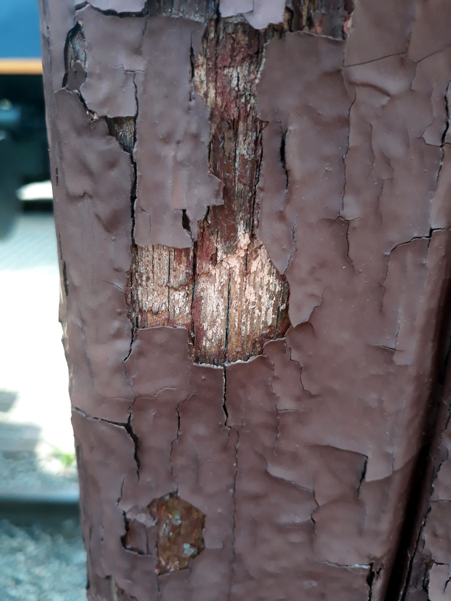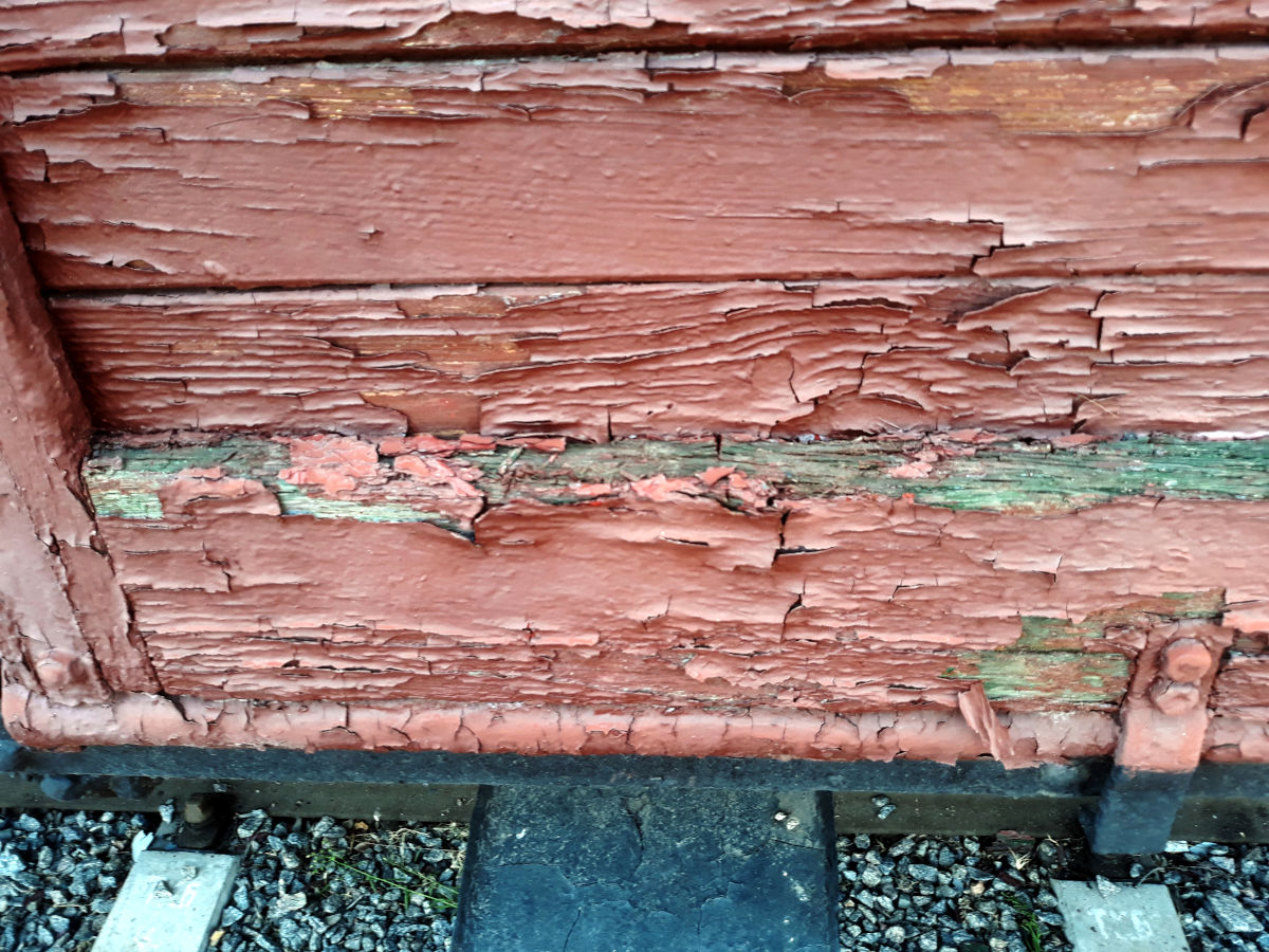 Но попадание грузового вагончика в музей оказалось не намного хуже вандалов, которые, к слову, и там водятся в избытке. Вагон стал ощутимо заваливаться, заметно, что осели металлические стойки крыши, весь кузов облез, краска местами обнажила дерево, а дерево в некоторых местах, к примеру, рама двери - стало трухлявым и выкрашивается.