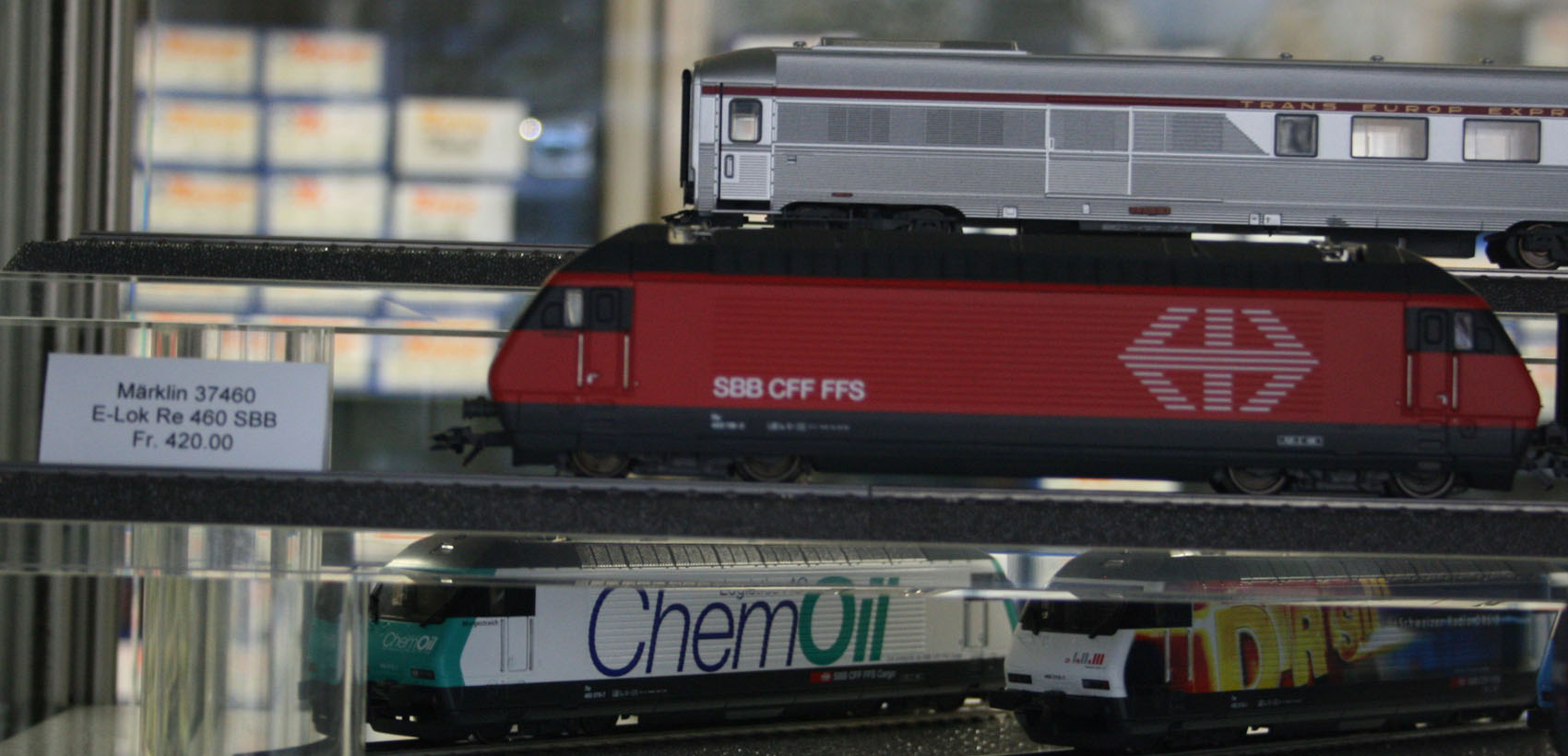 Пассажирские электровозы Re 460, швейцарская часть серии Lok 2000 - массовые локомотивы, широко представлены в моделизме.