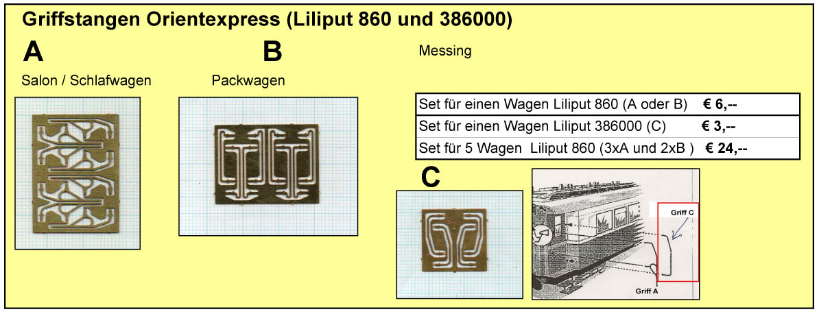 Друзья, спасибо всем за обзор отличного сета от Лемке-Хобитрейн и за сравнение его с почти аналогами от Трикс и Риваросси. А также за замечательные фотографии вагонов компании CIWL, частично или полностью послужившими прототипами вышеупомянутых наборов. Я не изучал глубоко историю Ориент Экспресса и продукции CIWL , а также тех, кто их копировал, но поскольку все же приобрел упомянутый сет H44014 (1 багажный вагон и 2 спальных) и H44015 (1 багажный, 1 спальный и 1 ресторан), могу добавить пару слов о фотографиях, представленных Андреем и Владимиром и соответствии им вышеназванного набора. На фотографиях венгерского вагона от Владимира vover - поручни точь-в точь, как на спальниках и ресторане набора Lemke, но окрас не соответствует - вместо коричневой краски по дереву на прототипе - прозрачный лак, под которым видна фактура самого дерева, разная на разных досках. На фотографиях Андрея окрас дерева - как в наборе, а вот поручни - точь- в точь как на трехосных багажно-почтовых, а не спальных вагонах Lemke Hobbytrain. Кроме того, рама вагона , представленного Андреем Afess - белого цвета с черными надписями, а это уже соответствует окрасу спальных вагонов набора Вена - Остенде, состоящего из 5-и вагонов, а не шести, представленного Leo Eisenbahn HO и выпущенного Lemke где-то на год раньше, чем представленный Вена-Ницца-Канн. Вот ссылка на данный сет, состоящий из двух артикулов: 44010 и 44011 для постоянноuо тока и 44012, 44013 для переменки: http://traintamarre.tassignon.be/invent ... &type=CIWL