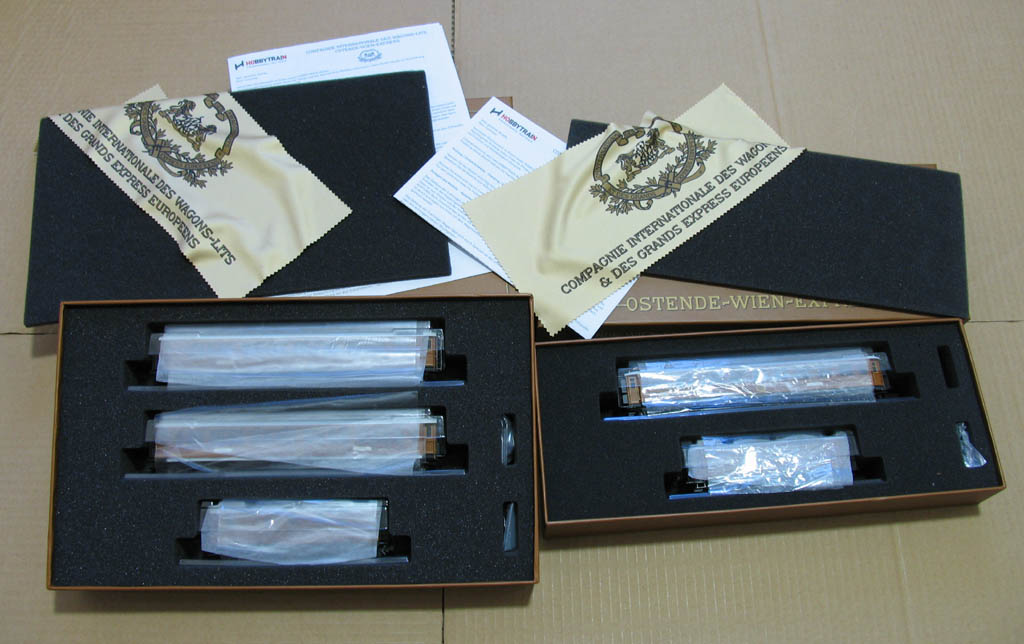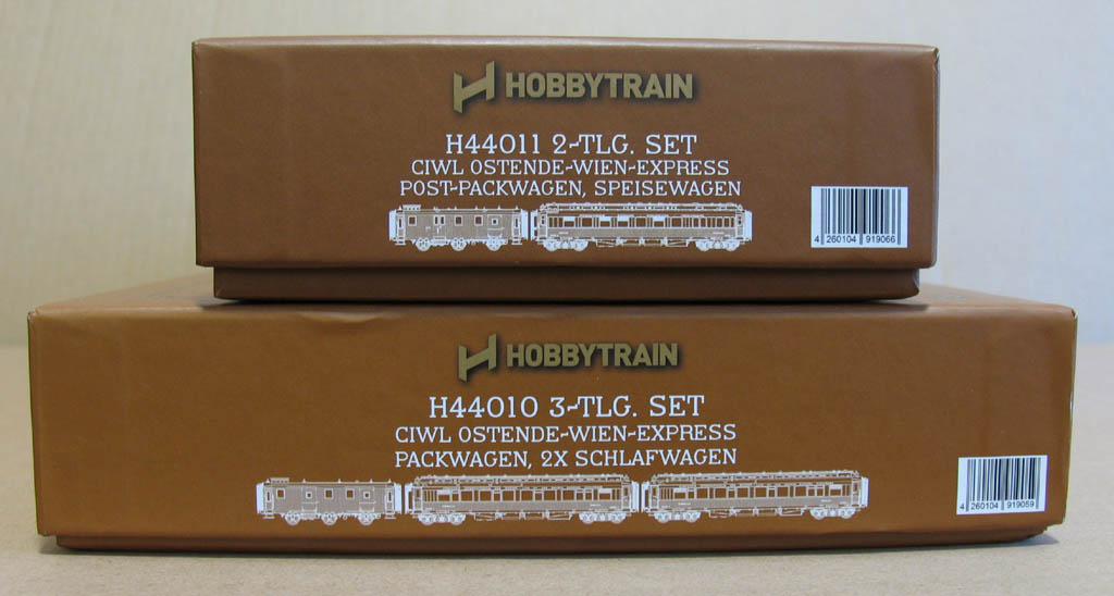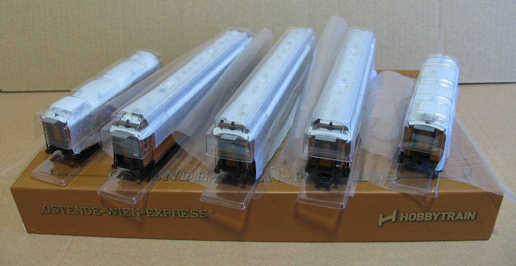 Очень долго собирался, и таки разжился комплектом из двух наборов вагонов Ostende Wien Express (Hobbytrain 44010+44011).