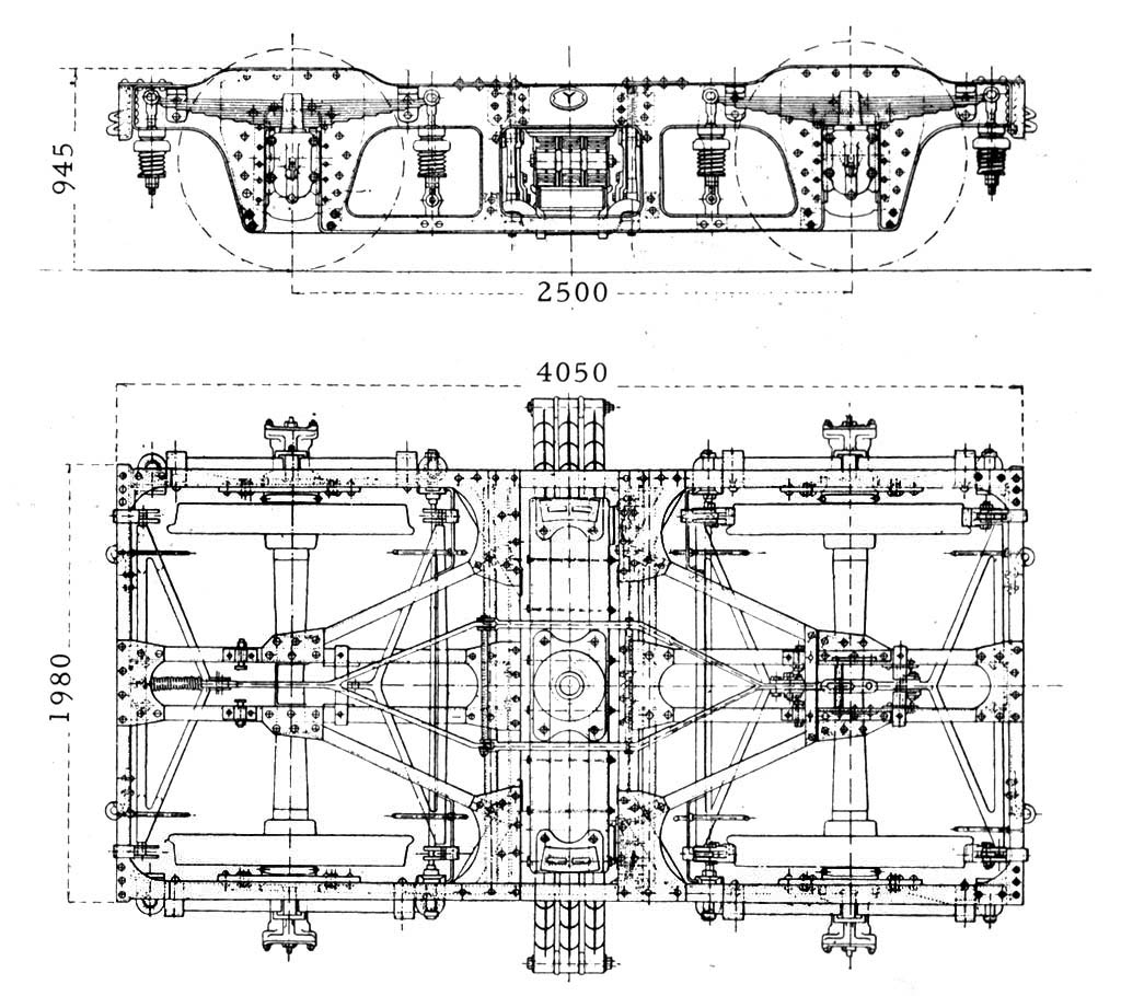 Отказавшись от дальнейшего развития темы тяжелых 3-осных конструкций (появившихся на ряде серий вагонов CIWL с 1904 года), с 1908 года компания освоила новый проект 2-осных тележек с очень мягким ходом. В отличие от ранних конструкций, у новых моделей было увеличено межосевое расстояние, и установлены 4-е пакета парных рессор: