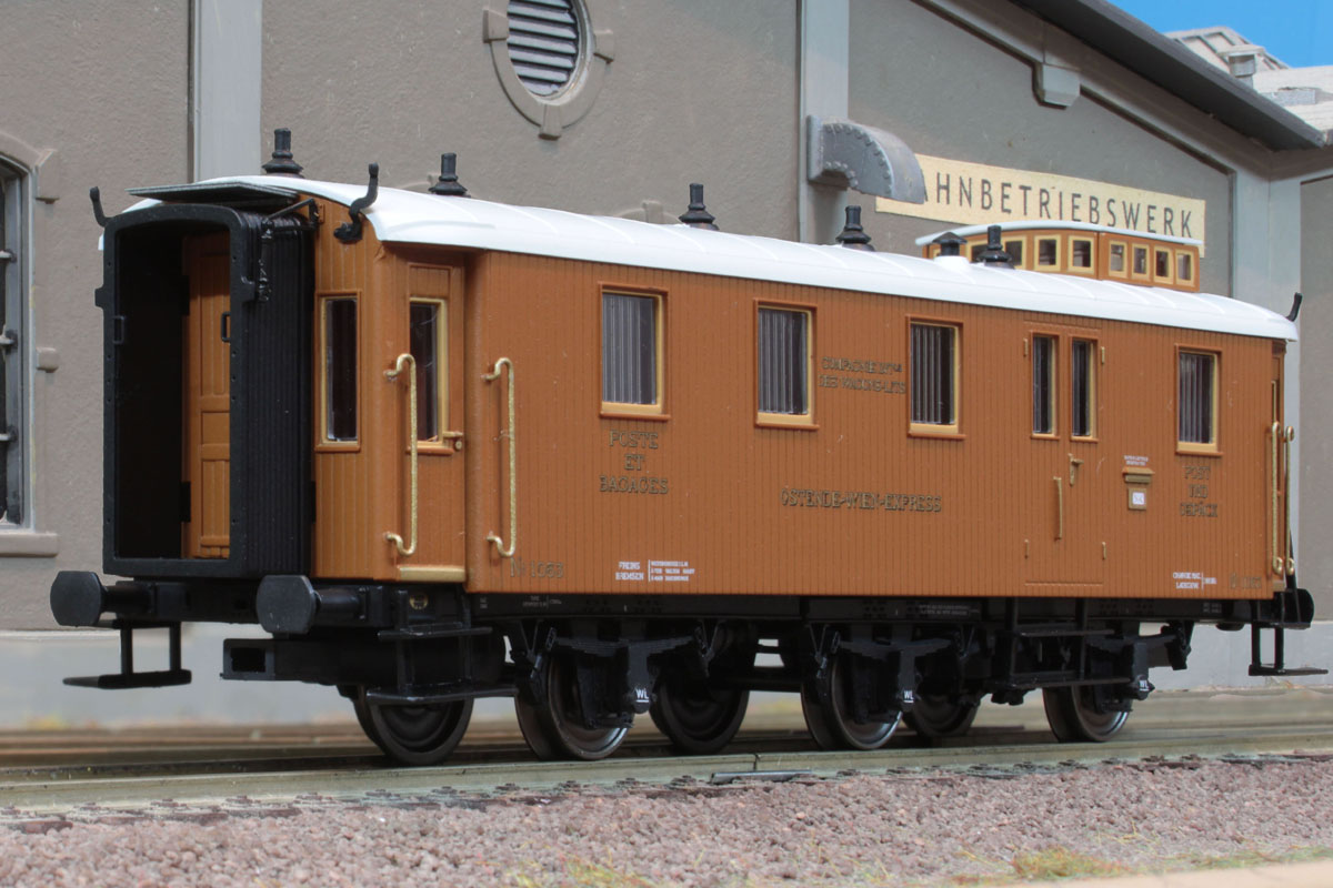 3. На почтово-багажных вагонах нанесена большая надпись: на Вена - Ницца - Канн она белого цвета, на Вена-Остенде - золотистая с окантовкой. Мне лично второй вариант нравится больше, но это дело вкуса.