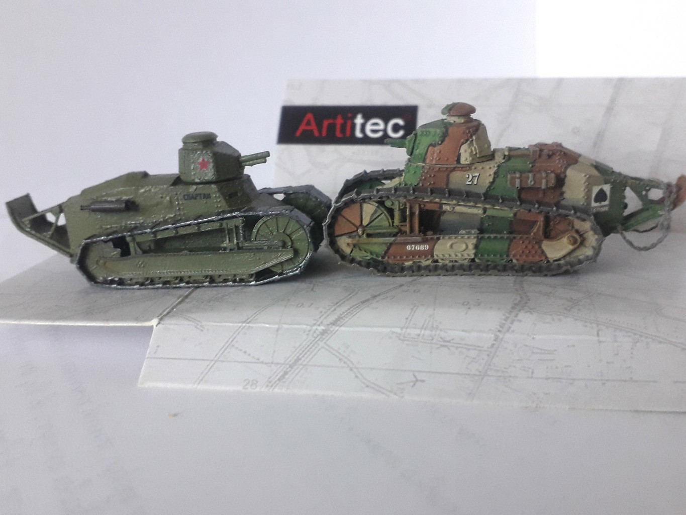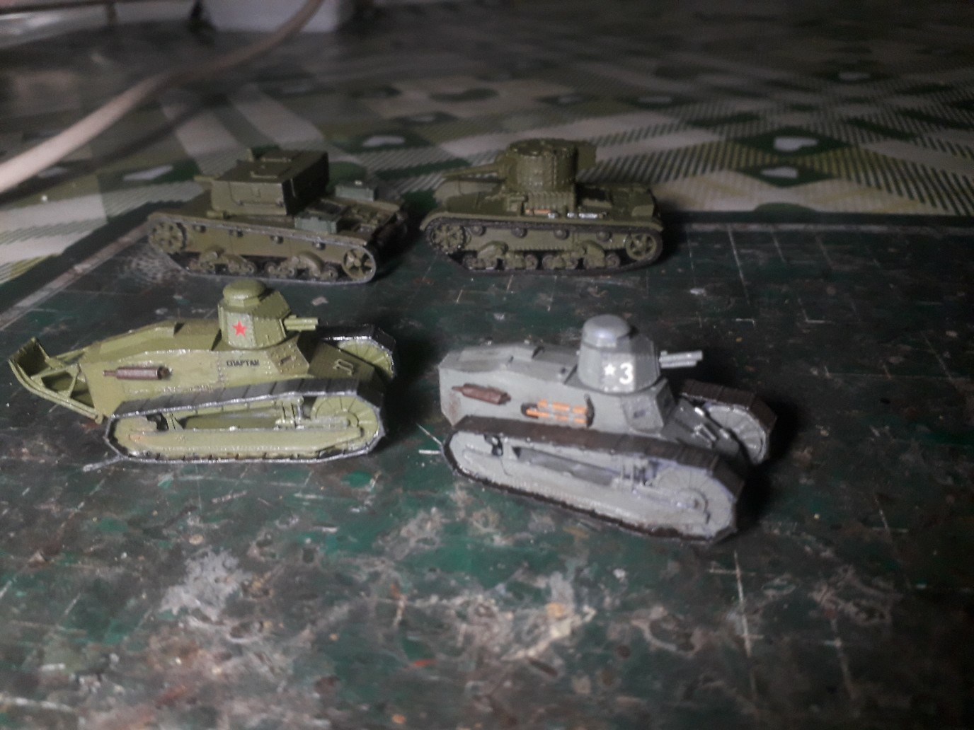 Всем доброго дня. Мои пять копеек. Виленовские Ft 17 в виде по мотивных первых советских Рено и республиканского танка с польским экипажем. Вдали зд печатные АТ 1 и ранний Т 26