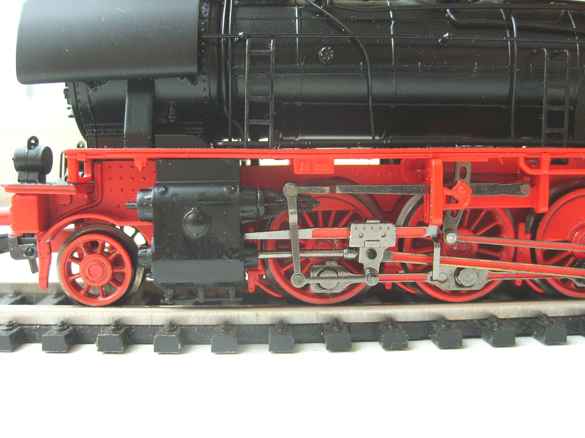 Модель фирмы Piko появилась на свет в 1994 году, поэтому деталирована лучше, чем более ранние 01.5, reko 41 или 52.19-20 - многие трубопроводы установлены отдельно. Представляет из себя выпущенный Хеншелем (что видно по табличке и соответствует номеру) паровоз, на котором уже установлен в левом водяном баке водоподогреватель, а положение буферных фонарей соответствует фабричному. Часть мелочёвки не установлена, включая трапики к угольному ящику. А в общем модель оставляет неплохое впечатление. Единственная претензия - слишком большие отверстия под навесное оборудование. Просто защёлкнуть не удастся - придётся клеить.