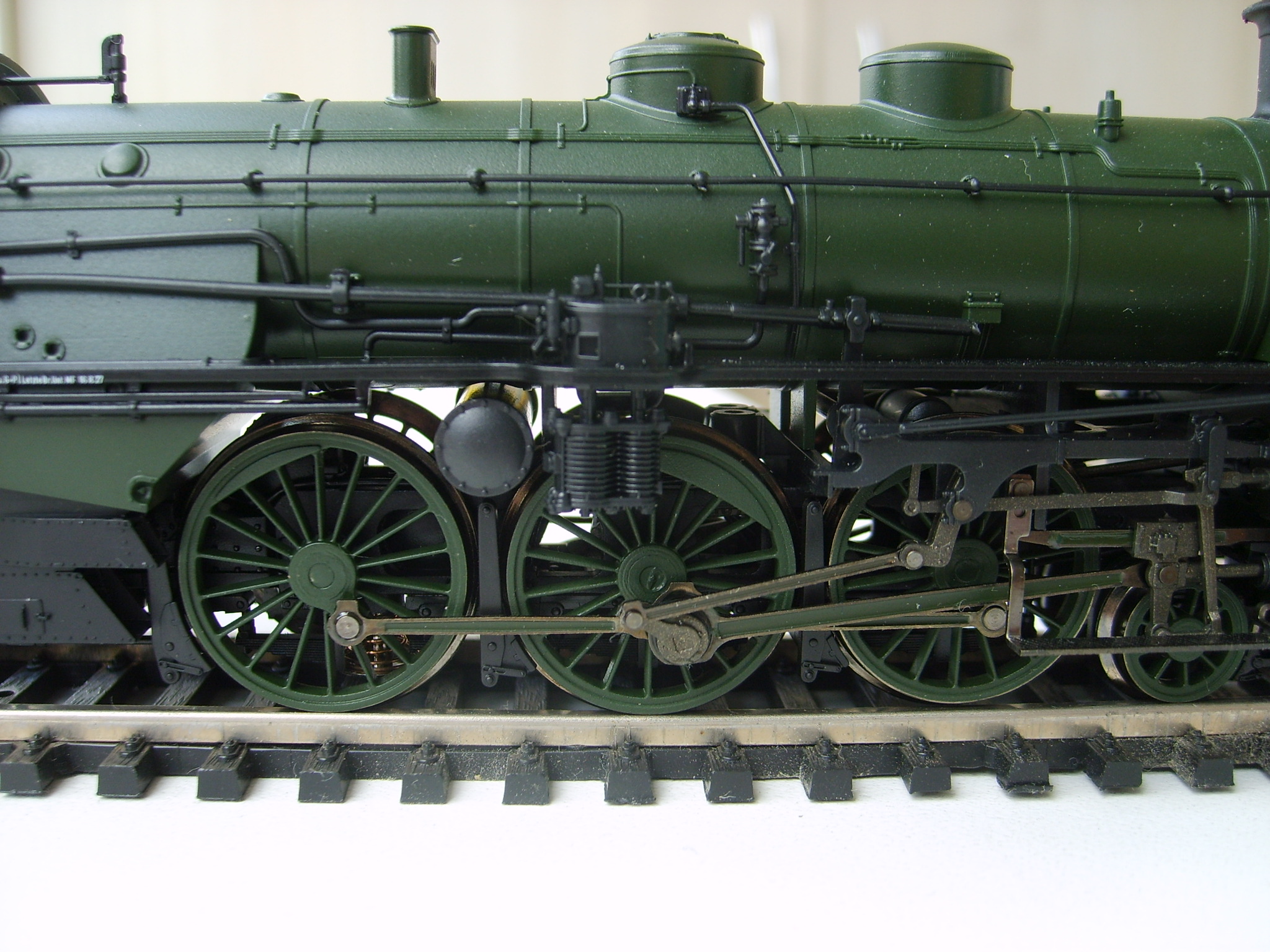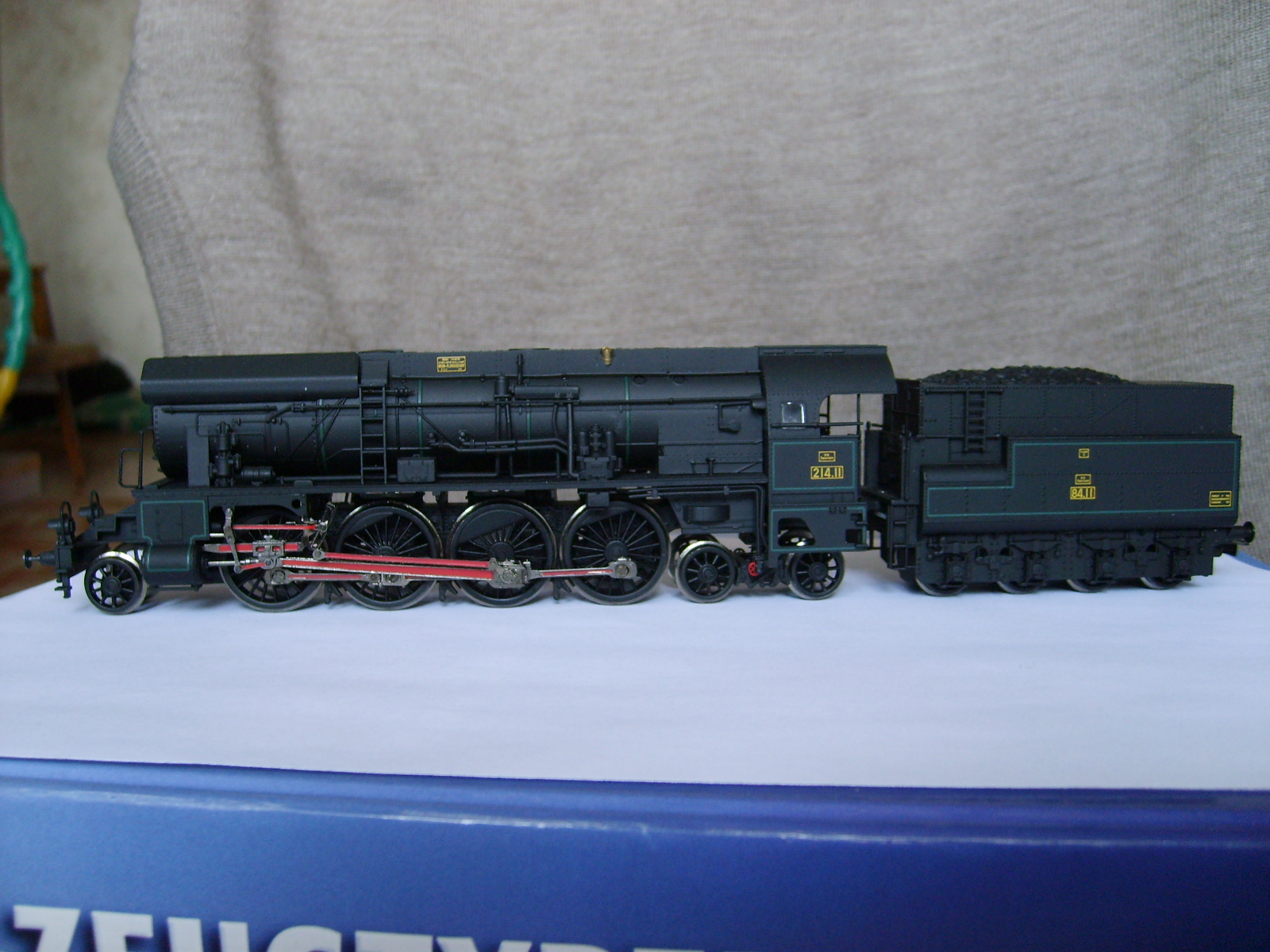 Модель такого переделанного из 55 в 56 паровоза выпускает фирма Лилипут. В данном случае принадлежности восточно-германских ж.д.. Если честно - на ходу ещё не пробовал, но сам локомотив тяжёлый, привод организован в паровозе, а тендер катается "прицепом". Сцеплен паровоз с тендером с помощью динамической сцепки, что позволяет сохранять минимальное расстояние между ними, в этой-же сцепке организована и передача питания с помощью разъёма. Свет организован уже на диодах, но его цвет можно будет определить только во время "ходовых испытаний". Деталировка очень хорошая - даже трубы песочниц сделаны отдельными деталями.