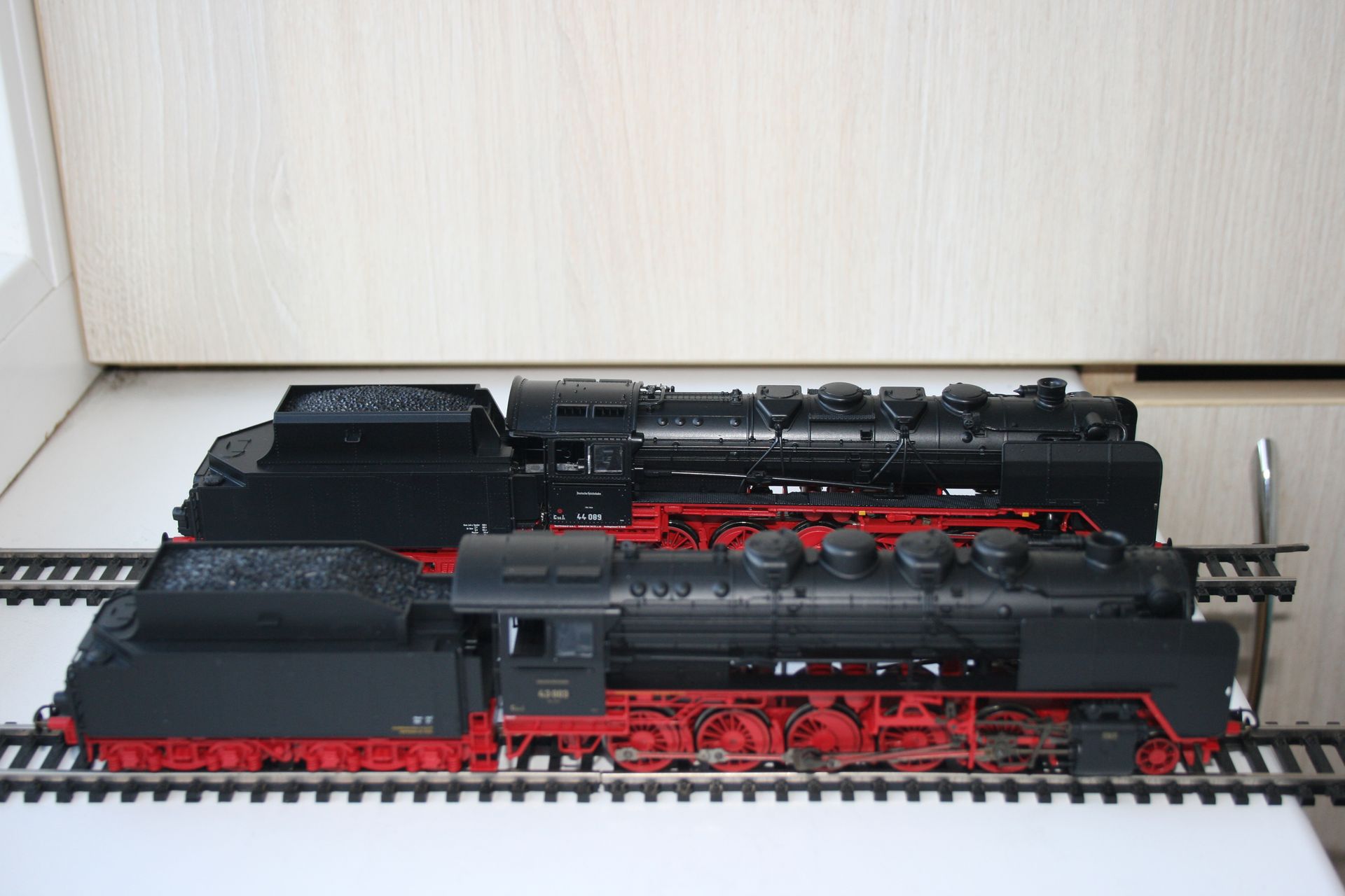 Модели разных производителей: 43-й - Фляйшманн, 44-й (серийный) - Роко. Разница в деталировке переднего (да и заднего) буферного бруса видна каждому.