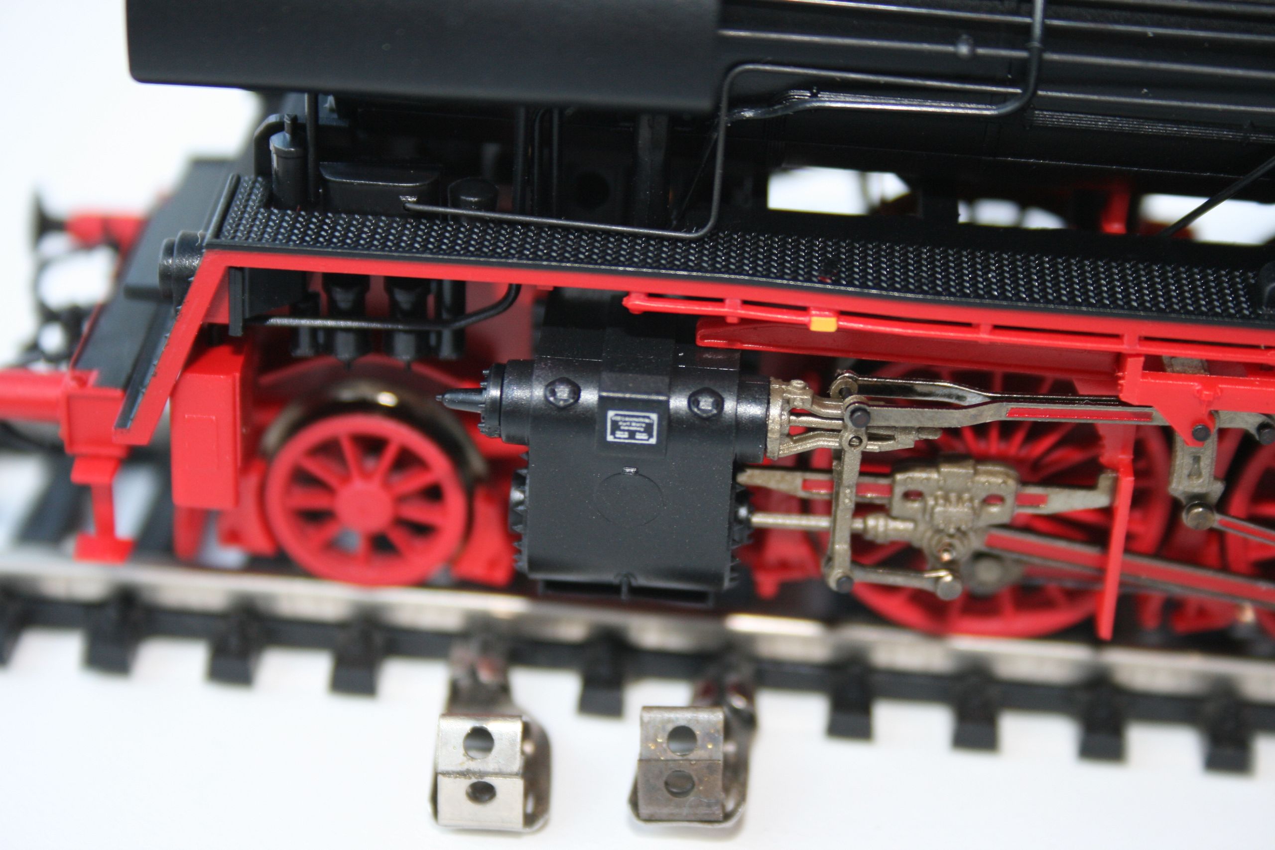 Модель имеет привод в тендере с передачей через кардан на движущие оси локомотива (как, впрочем, и все последние разработки Роко). В ней, естественно, учтено, что паровоз имел более короткую раму, чем исходный 50-й.