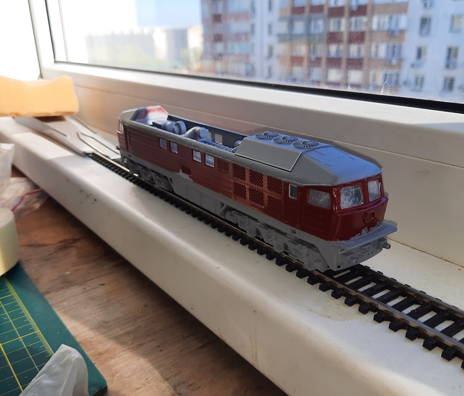В основном собираю коллекцию PIKO H0 времен ГДР, но в прошлом году не удержался и приобрел кит по сборке стендовой модели тепловоза BR130 от Revell. Покупал на Скайлоте, набор мне достался в усеченном виде - не хватало нескольких элементов - основной панели крыши и части переднего щита одной из кабин, и ещё декалей. Собрал модель ещё в прошлый сентябрь, покрасить всё руки не доходили... в апреле этого года "руки дошли"...