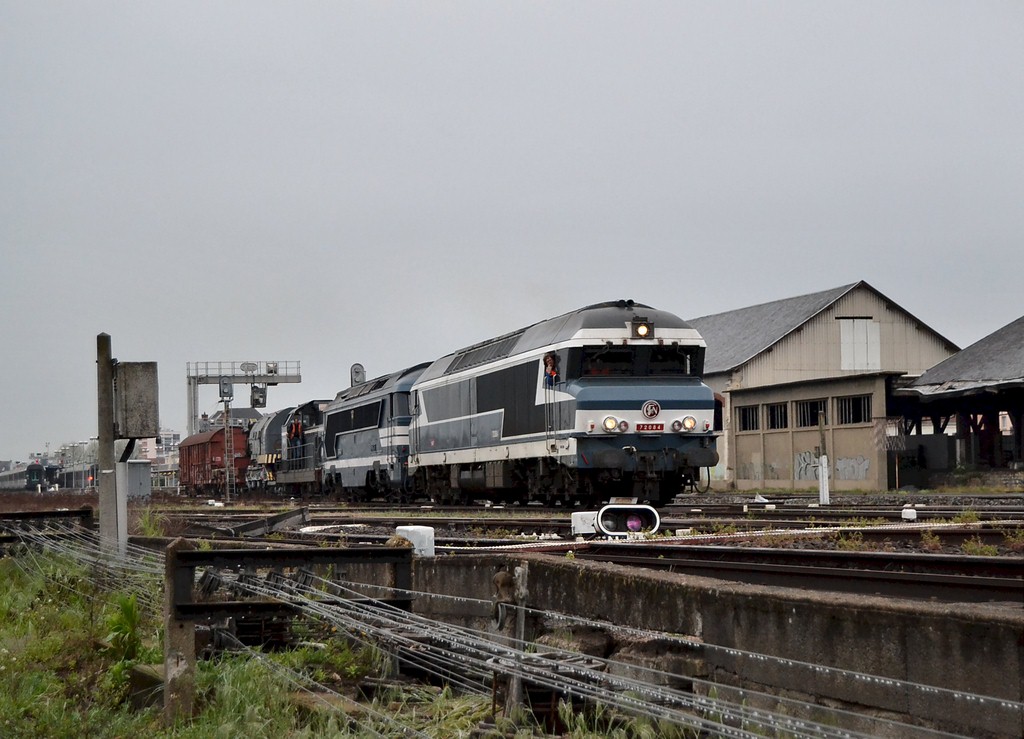 Судячи з того, що на цьому фото разом зчеплене, можу припустити, що це просто перегон або музейних, або списаних експонатів. Вихлоп має лише перший тепловоз, третій з голови - стовідсотково музейний.