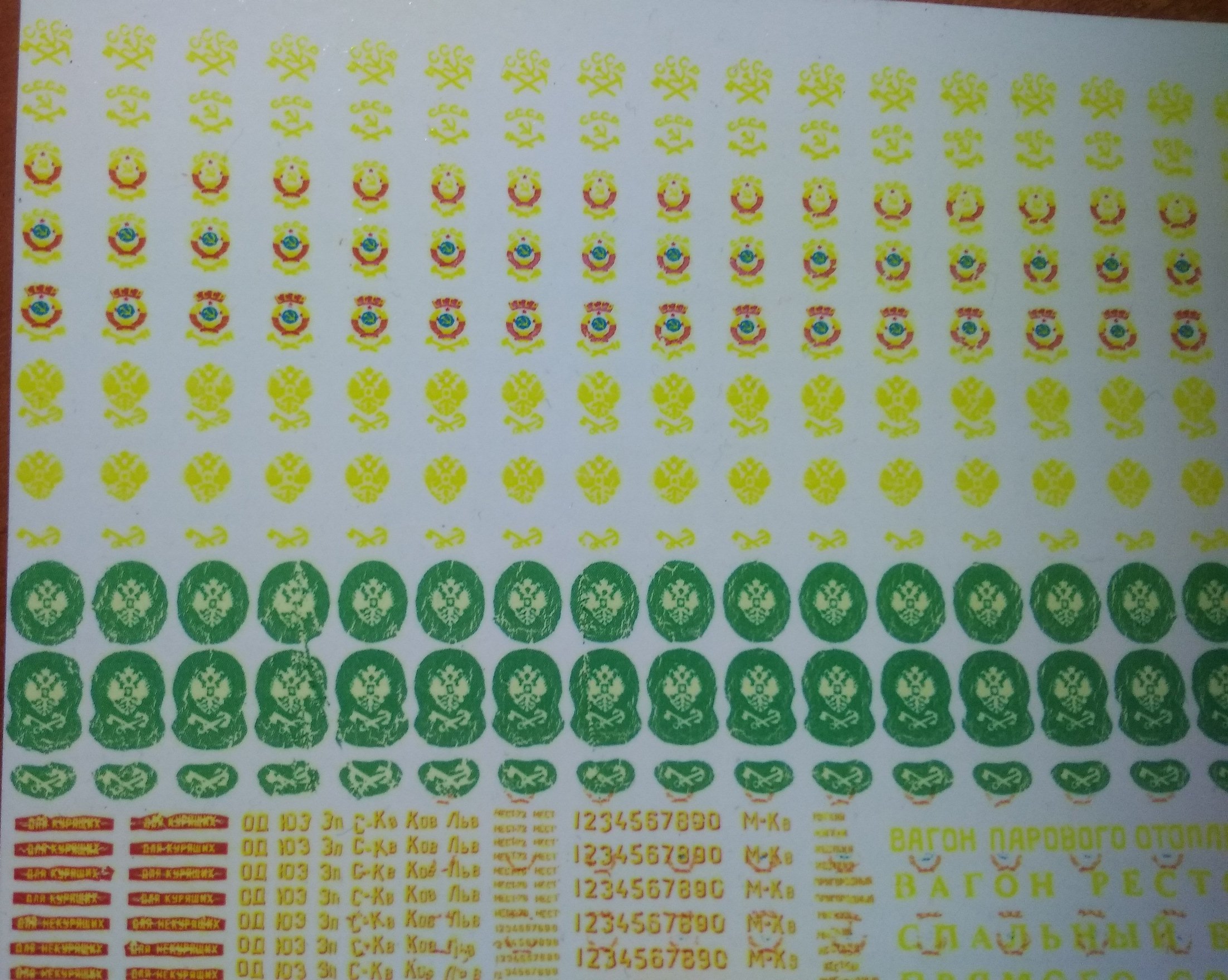 Стал рссматривать фото, что -то чем ниже. тем долее расплыто поучилось. Толи тянет так картридж, толи при покрытии лаком после печати повело. Следующий раз буду отслеживать по ступеням обработки. Гербы СССР получились довольно неплохо. Буду пробовать, как на краску вагона ляжет. КАчество не очень, пересниму потом при солнечном свете.