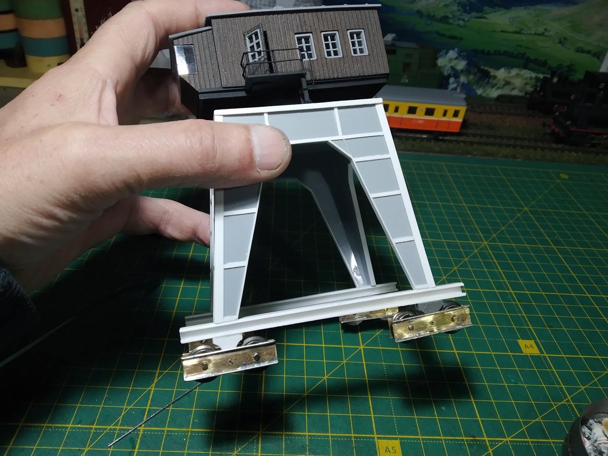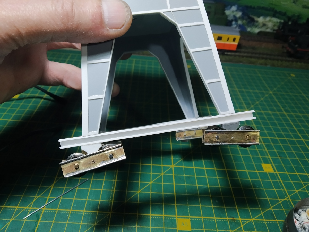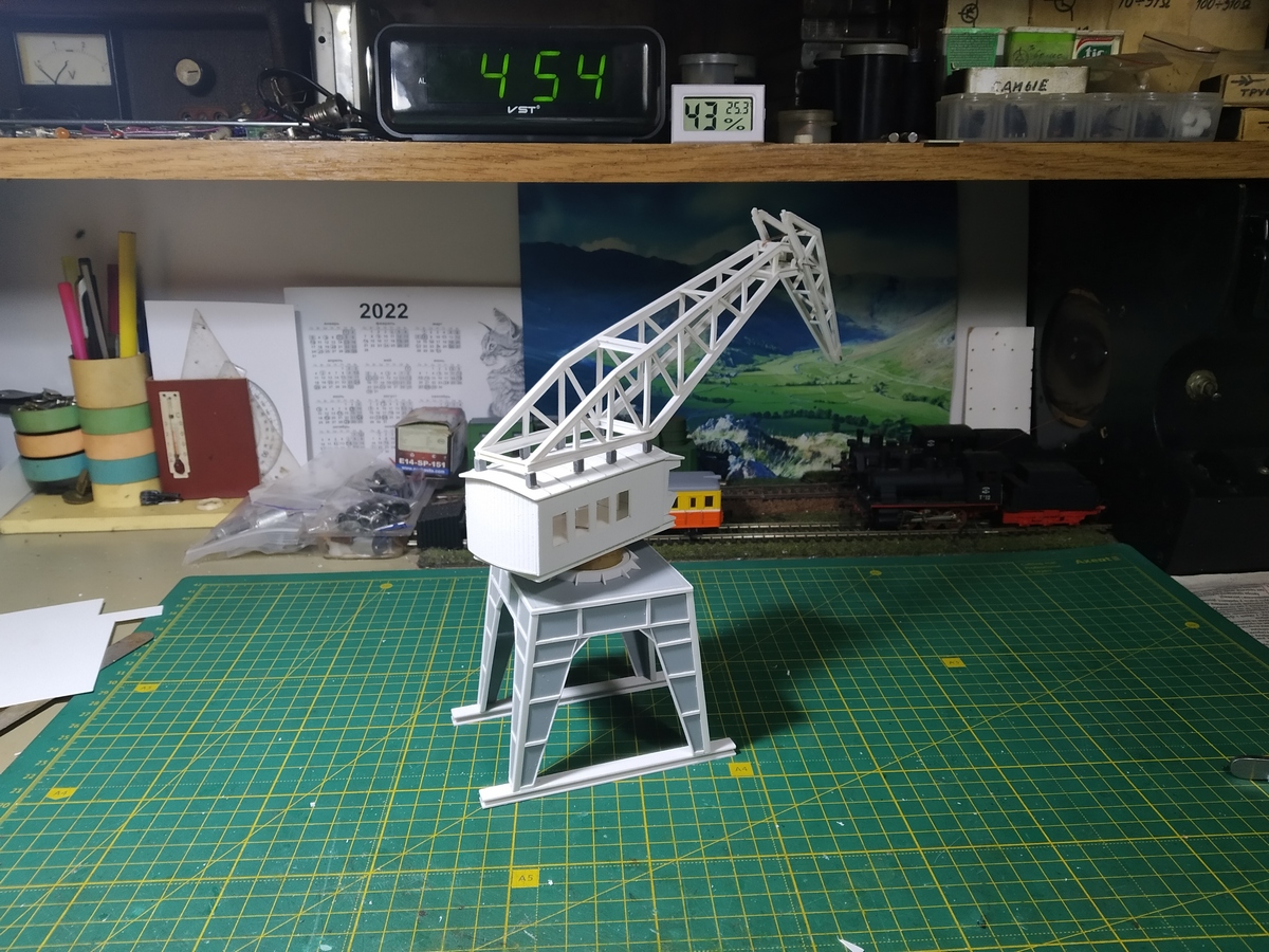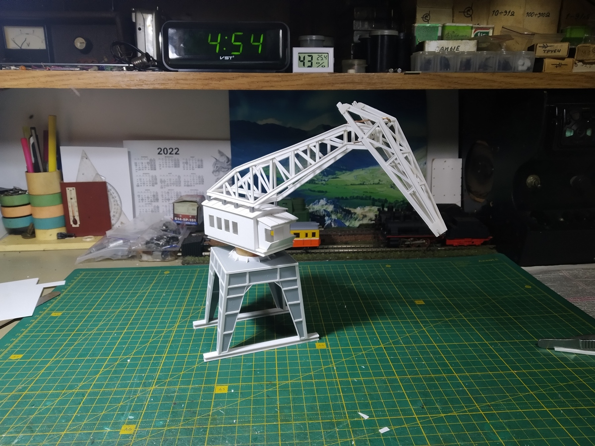 Кран пока обзавёлся только тележками. P.S. Стрела крана изначально лежала на полке так, что по умолчанию должна была упасть с высоты около 1,5м. Т.е. я отлично знал, что упадёт. Упала. Ничего не сломалось.