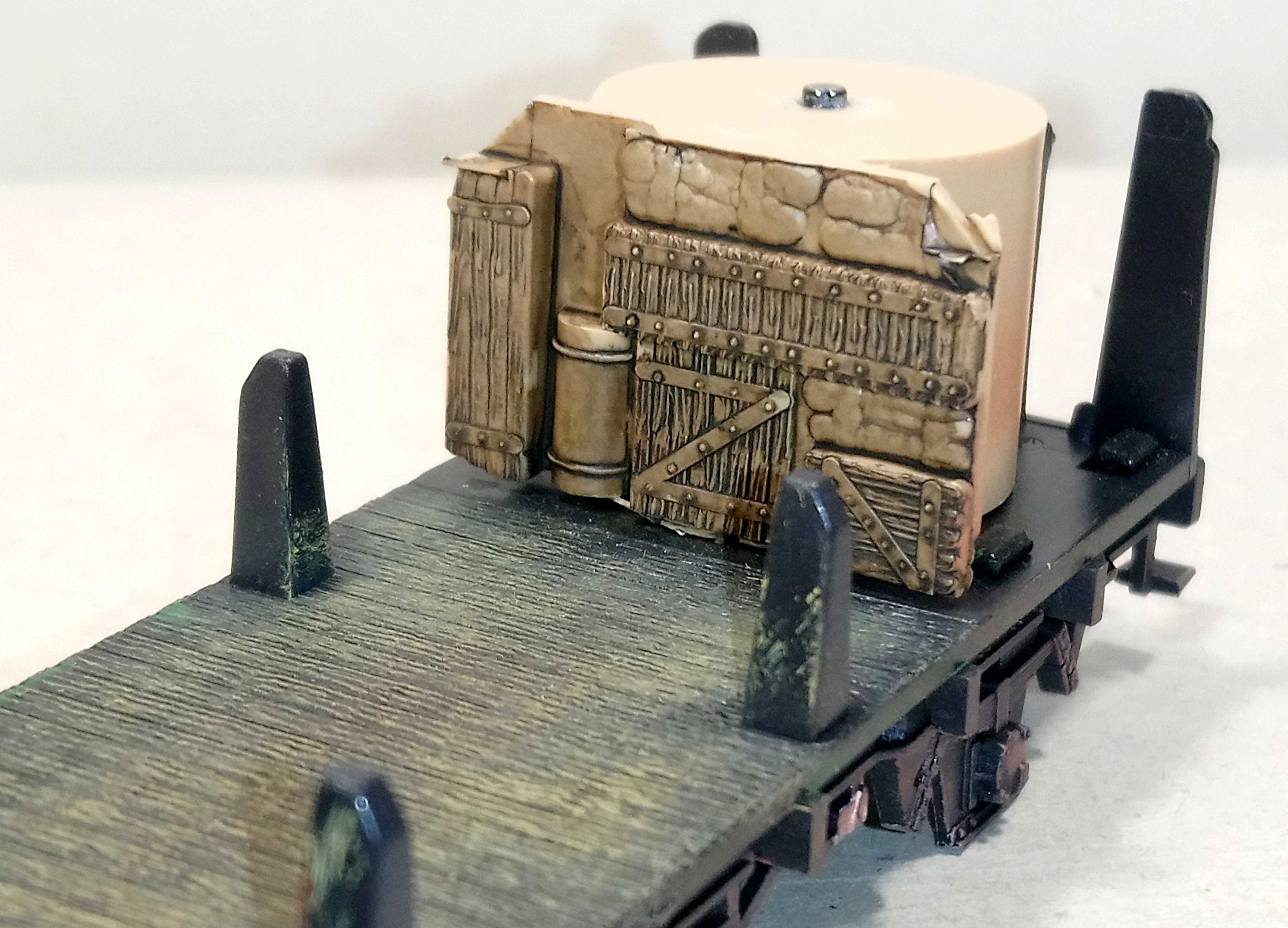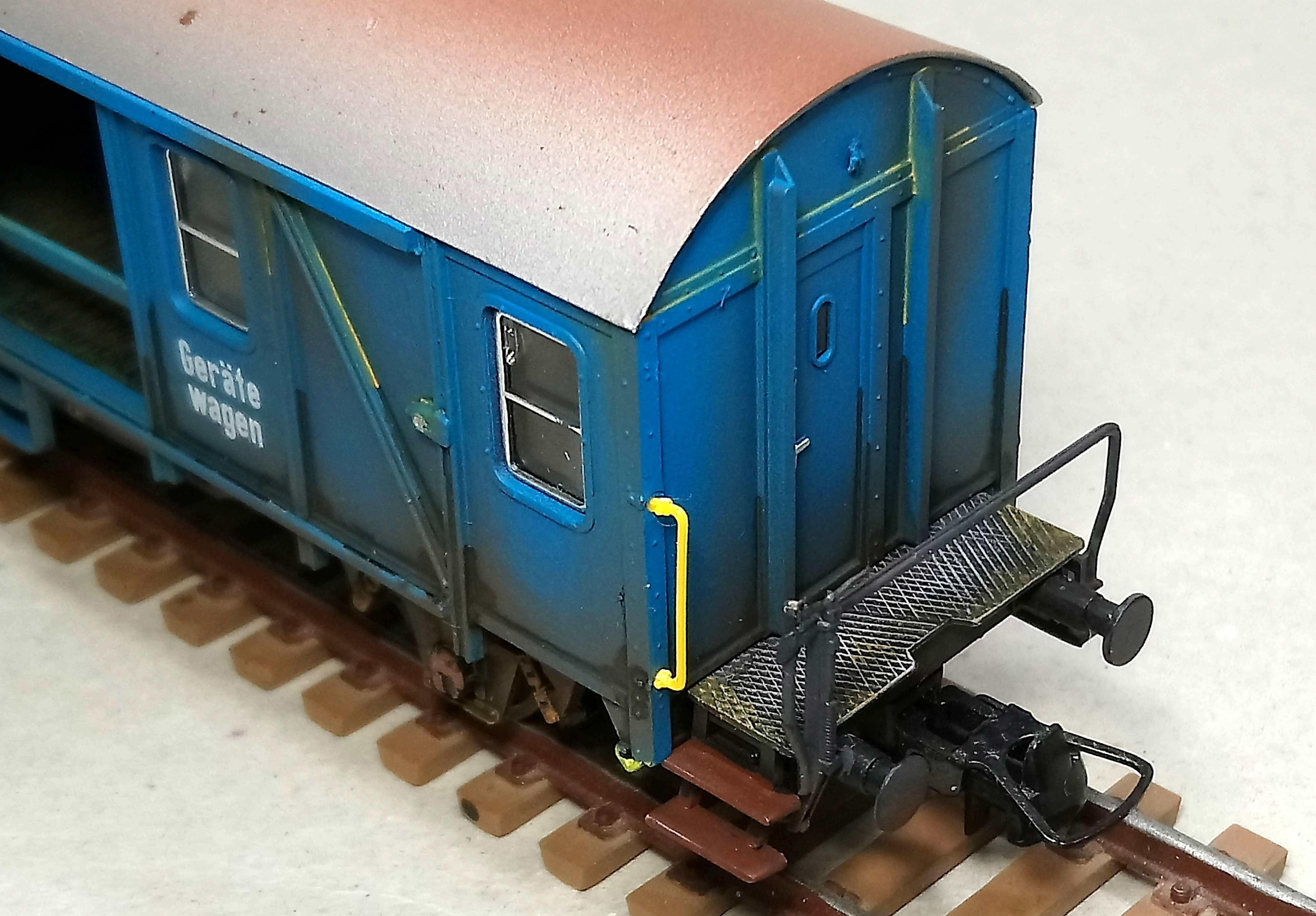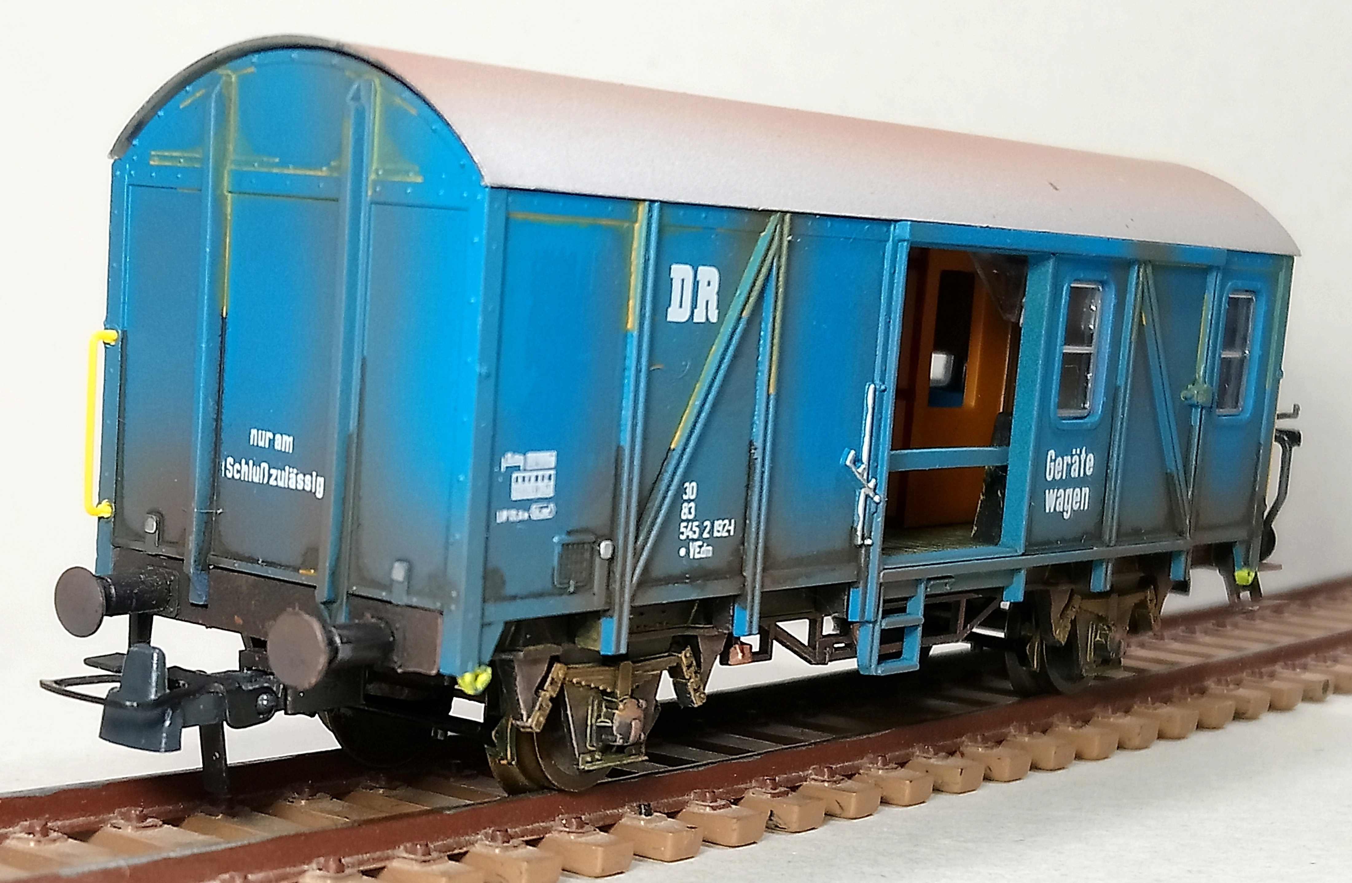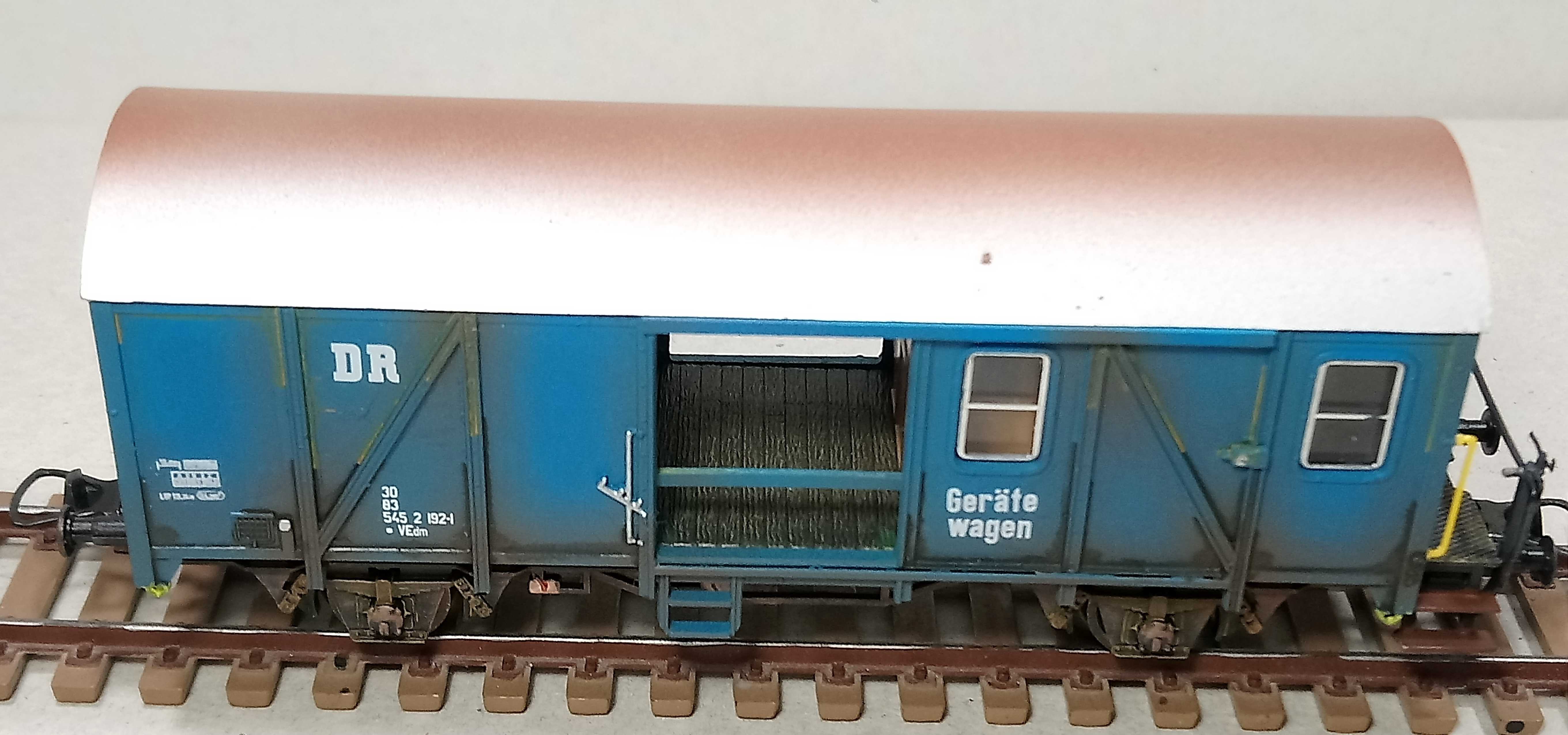 Сам вагон запланировал как вагон прикрытия к самодельному ГДР крану.Окрасил и слегка засрал.