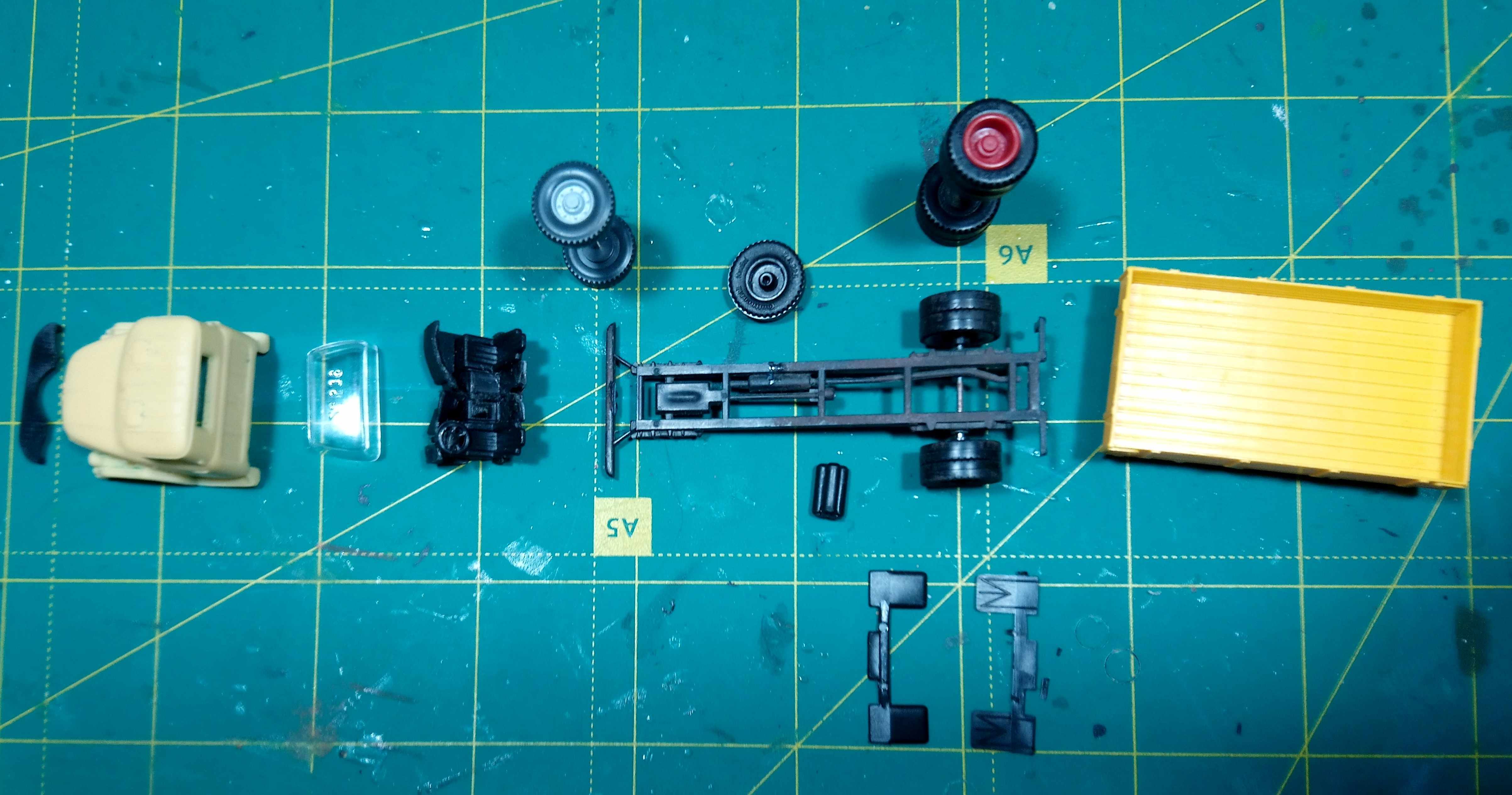 Був лише котел та рама. Решту допилював. А також фарбував. Далі був саморозвантажувальний вагон від Трікс. Весь розбитий. Бо корпус із пересохлого пластику.