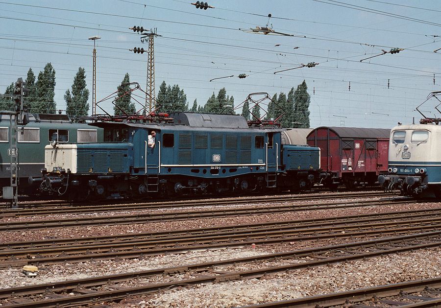 "Auch strömender Regen konnte mich nicht davon abhalten, bei einer E93 vor einem Personenzug die Kamera zu zücken. Und dass es sich hier um die erste Lok ihrer Baureihe handelte, machte die Sache natürlich noch unumgänglicher. E93 01 vor P1839 in Heilbronn Hbf am 06.07.68. Zu diesem Zeitpunkt präsentierte sich die Lok übrigens noch im alten Zustand mit vier Sandkästen pro Drehgestell und Seite sowie ohne Vordach"