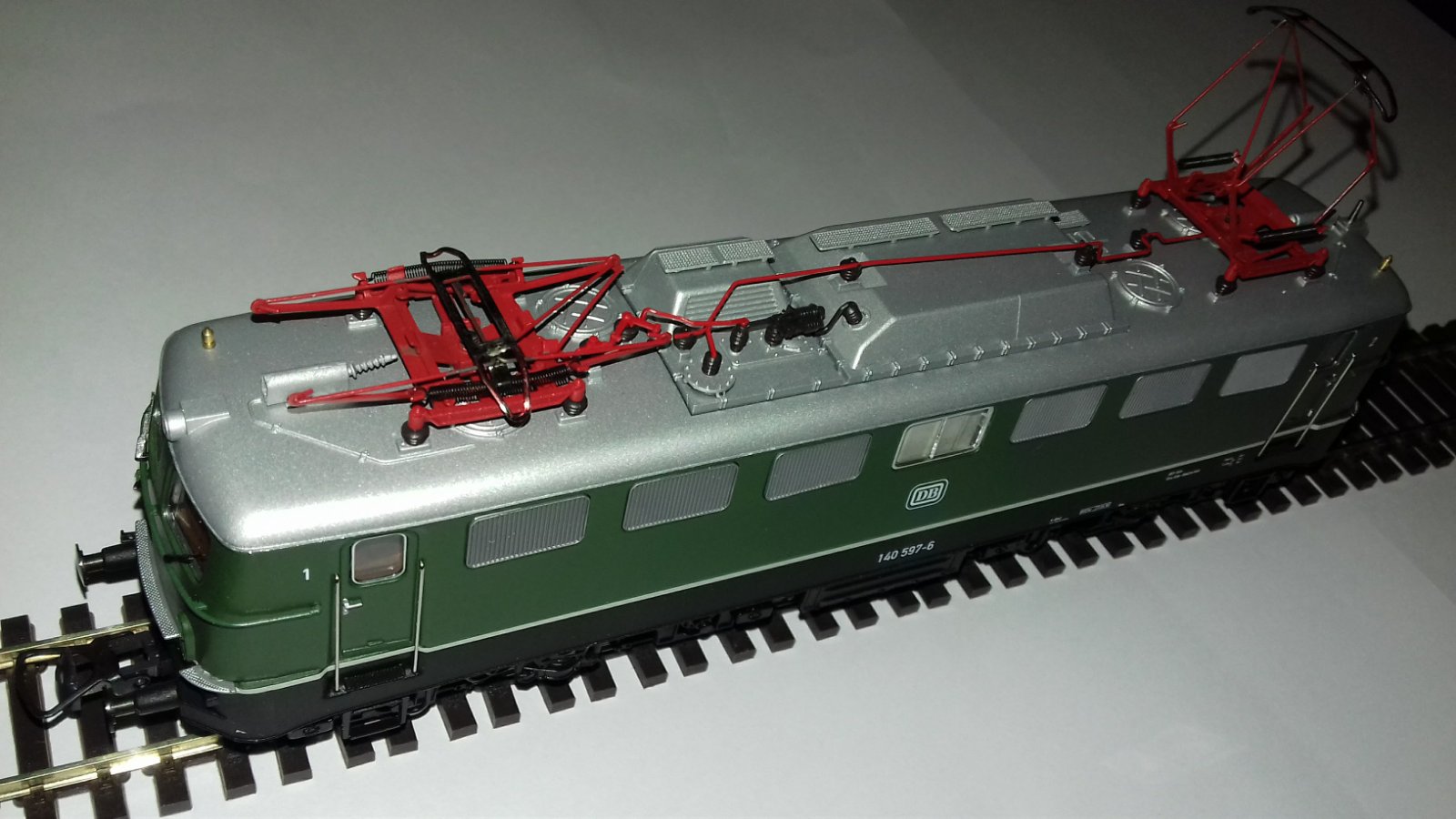 Касательно самой модели. Электровоз BR140 597-6 из стартового набора ROCO 41319, комплект с которым составляли ещё четыре шестиосные платформы-тяжеловоза со стальными слябями. Электровоз является представителем 4-й эпохи с характерным для того времени внешним видом – зелёный окрас кузова и серебристая крыша с водоотливным контуром по всему периметру.