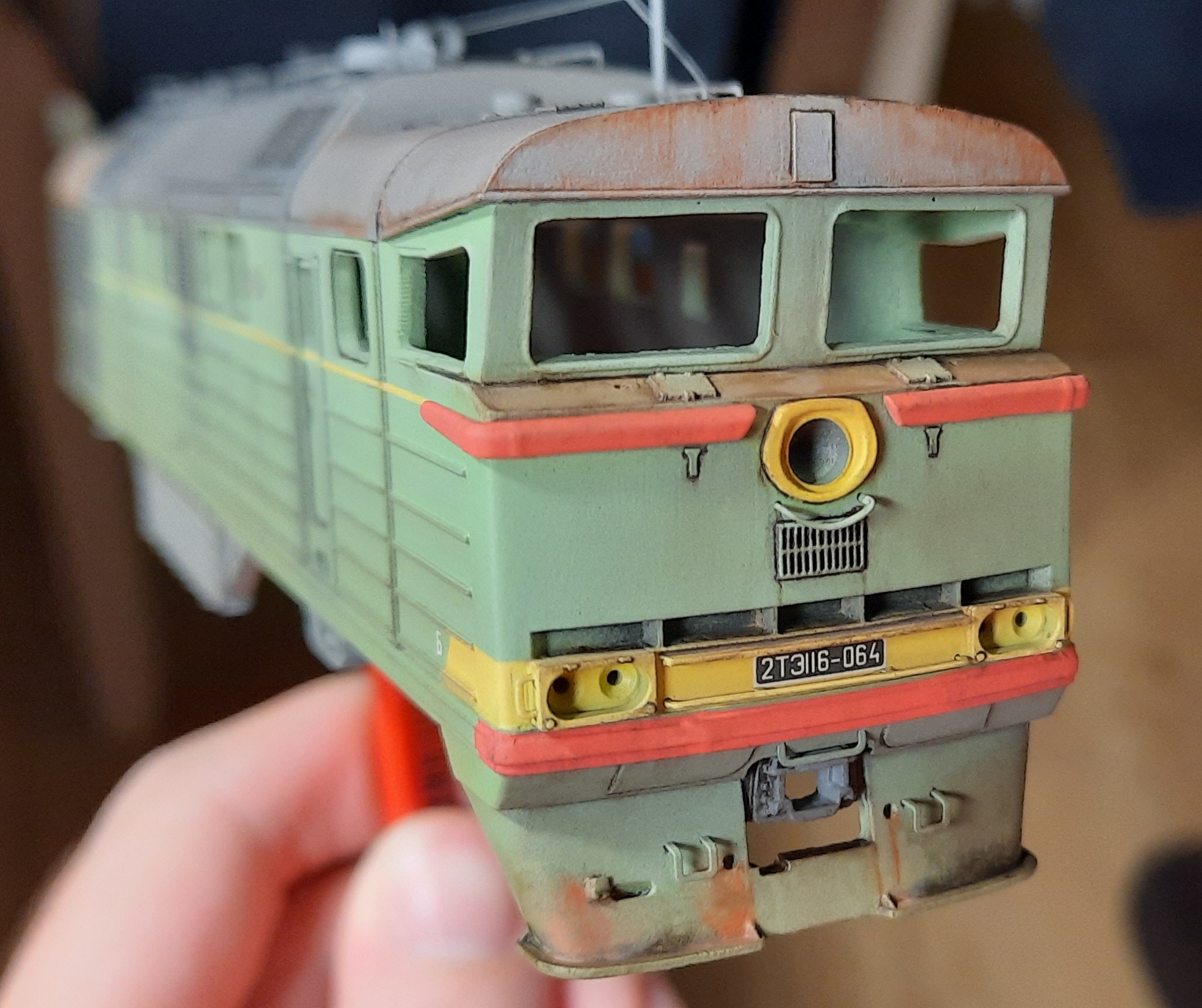 Добавил потёки на морде и грязь на метельник. В данной кондиции тепловоза это абсолютно уместно.