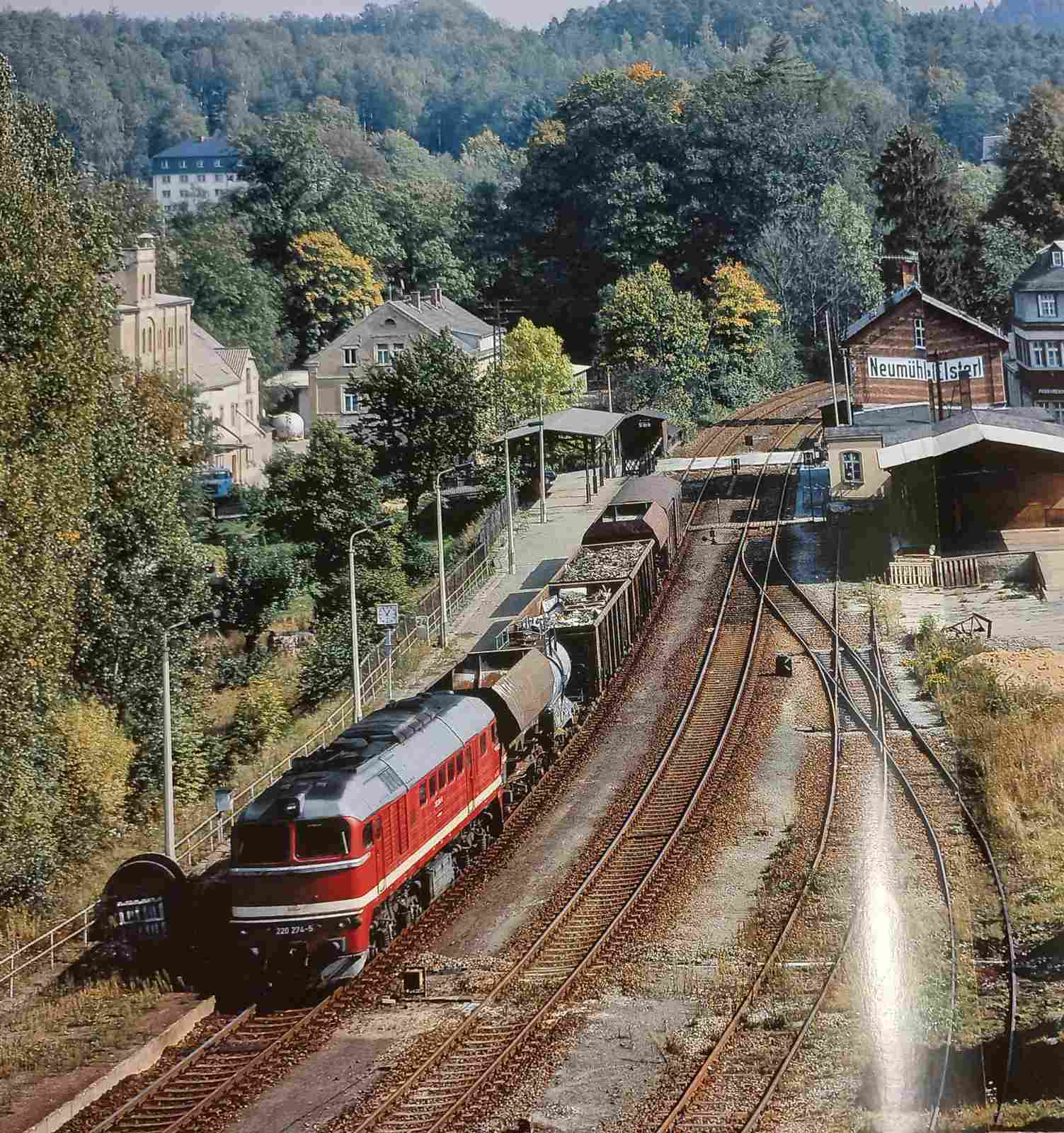 У 1987 році маршрутна мережа (без станційних колій) мала довжину 32,78 км, з яких 14,73 км належали "Рейхсбану". Управління заводською залізницею "Вісмута", яка юридично була класифікована як сполучна, спочатку належало до компетенції DR, але з 1963 року воно було передано Департаменту залізниць SDAG Wismut. Близько 70 відсотків транспортних послуг припадало на руду та пісок, решта - на вугілля, золу, цемент, шахтну деревину, паливо, будівельні матеріали і т.д.