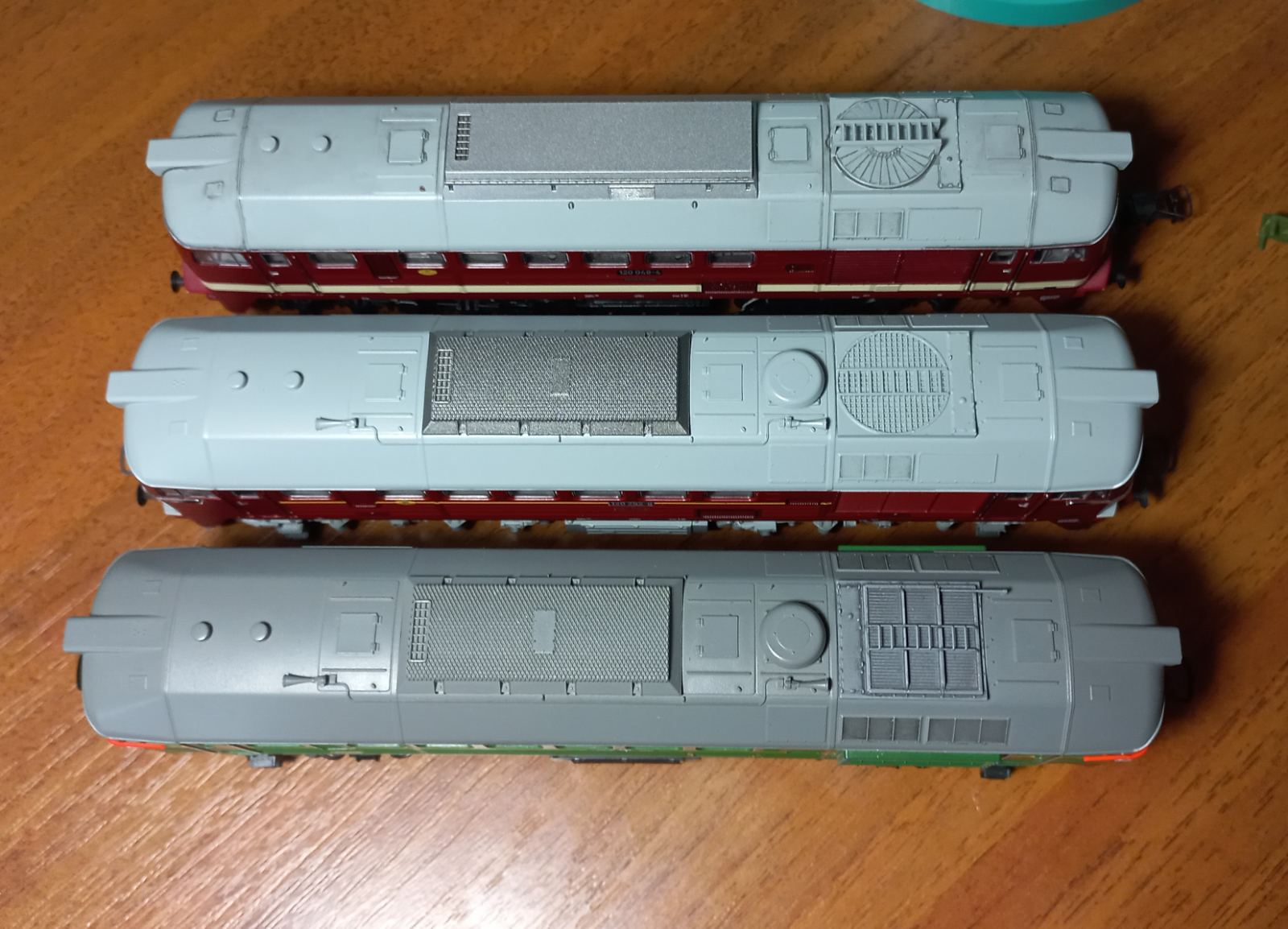 Додам від себе трішки "отсєбятіни". Деяки з описаних доробок досить добре видно на моделях "Машок". У мене є три різних кузова - наш, і два німецькі. Всі три дещо різні, давайте подивимось. Спочатку загальний план дахів: